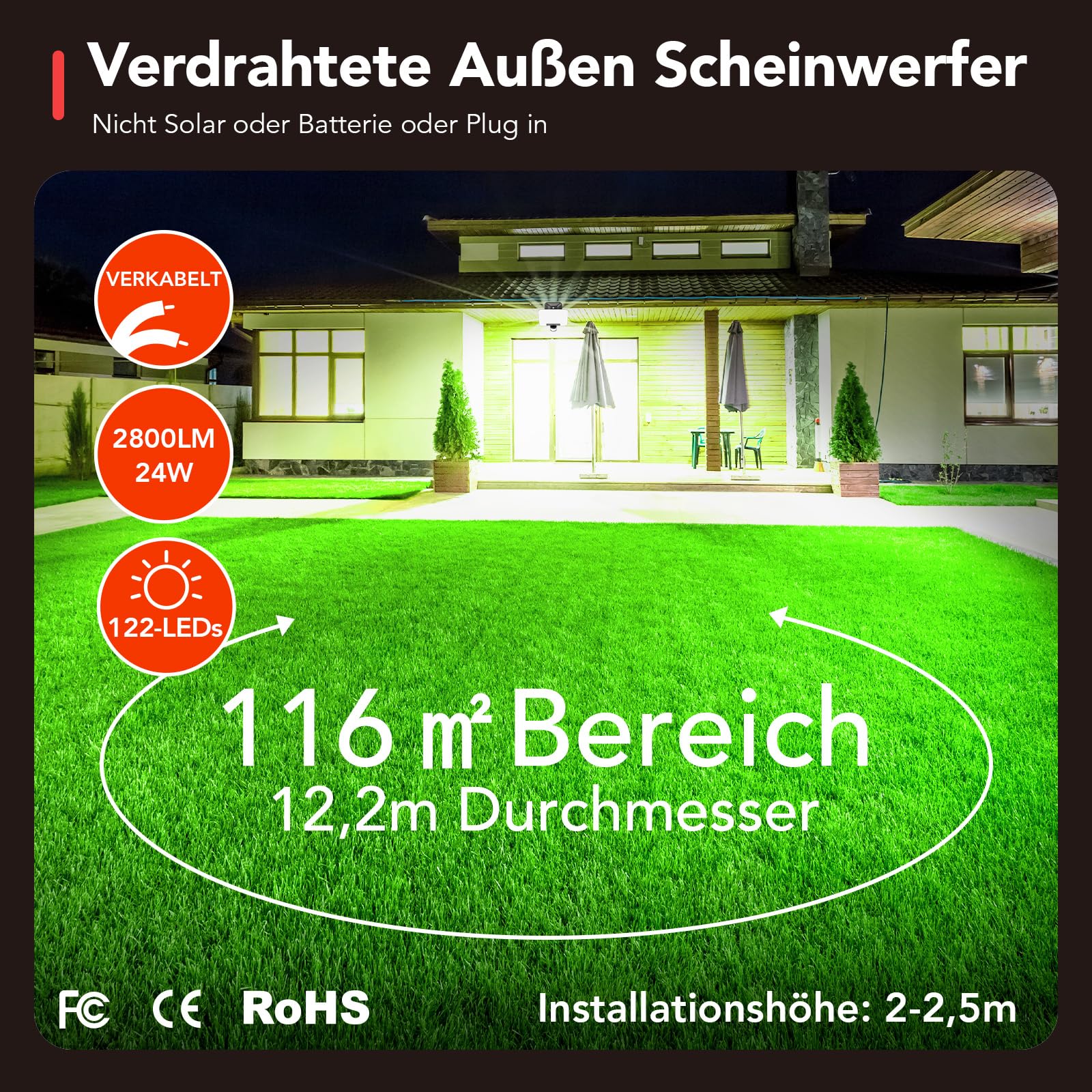 OREiN Smart Led Aussenlampe mit Bewegungsmelder 24W=200W, App steuerbar, CCT 3 Farbe Aussenwandleuchte 2800lm, Gruppensteuerung & Zeitplan, IP65 Intelligent Aussenleuchte für Hof, Haustür, Terrasse