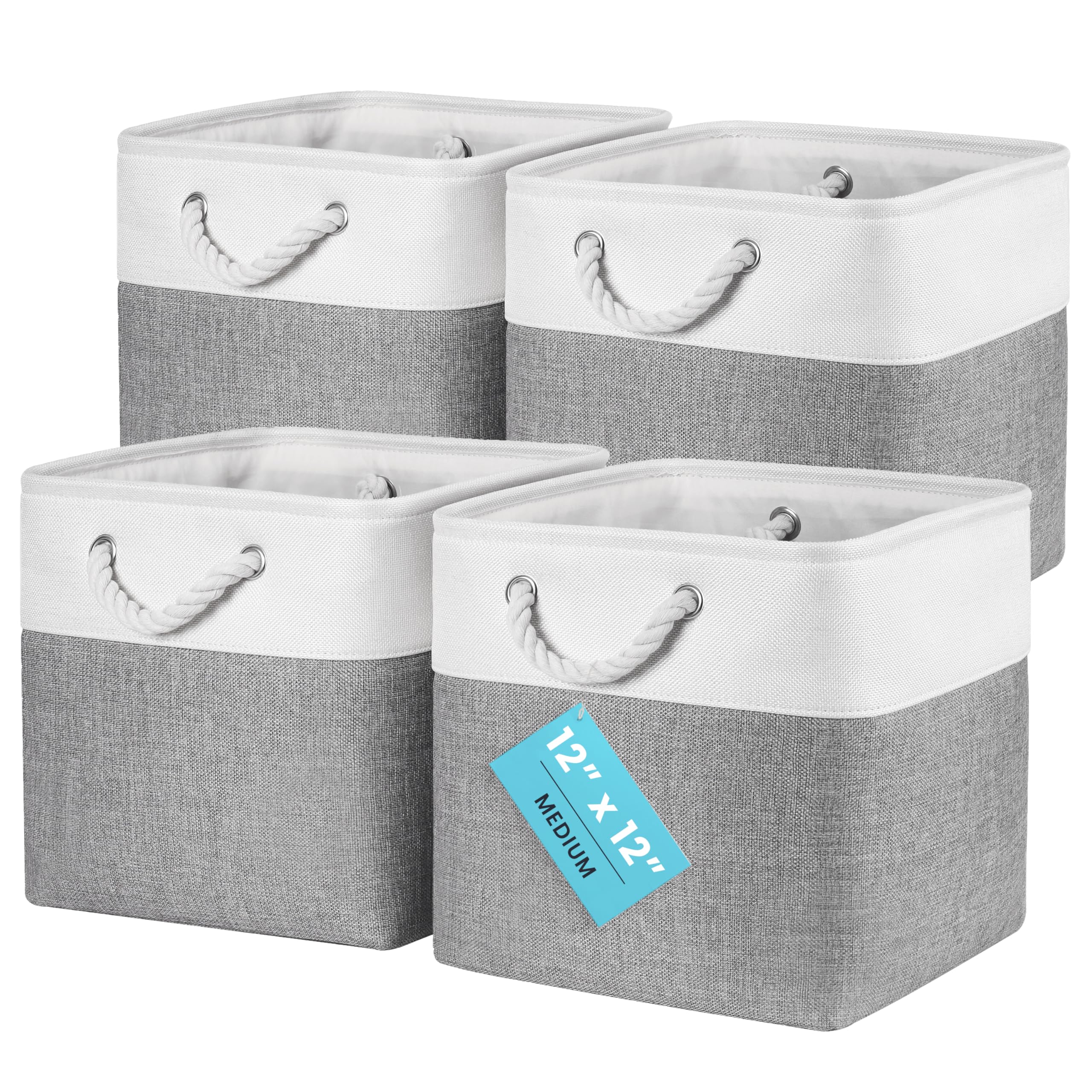 OrganiHaus Aufbewahrungsbox 30x30cm 4er-Set, Würfelkörbe aus Stoff mit Seilgriffen, Faltbare Aufbewahrungswürfel für Kallax Organizer, Ablagekörbe für das Kinderzimmer Grau/Weiss