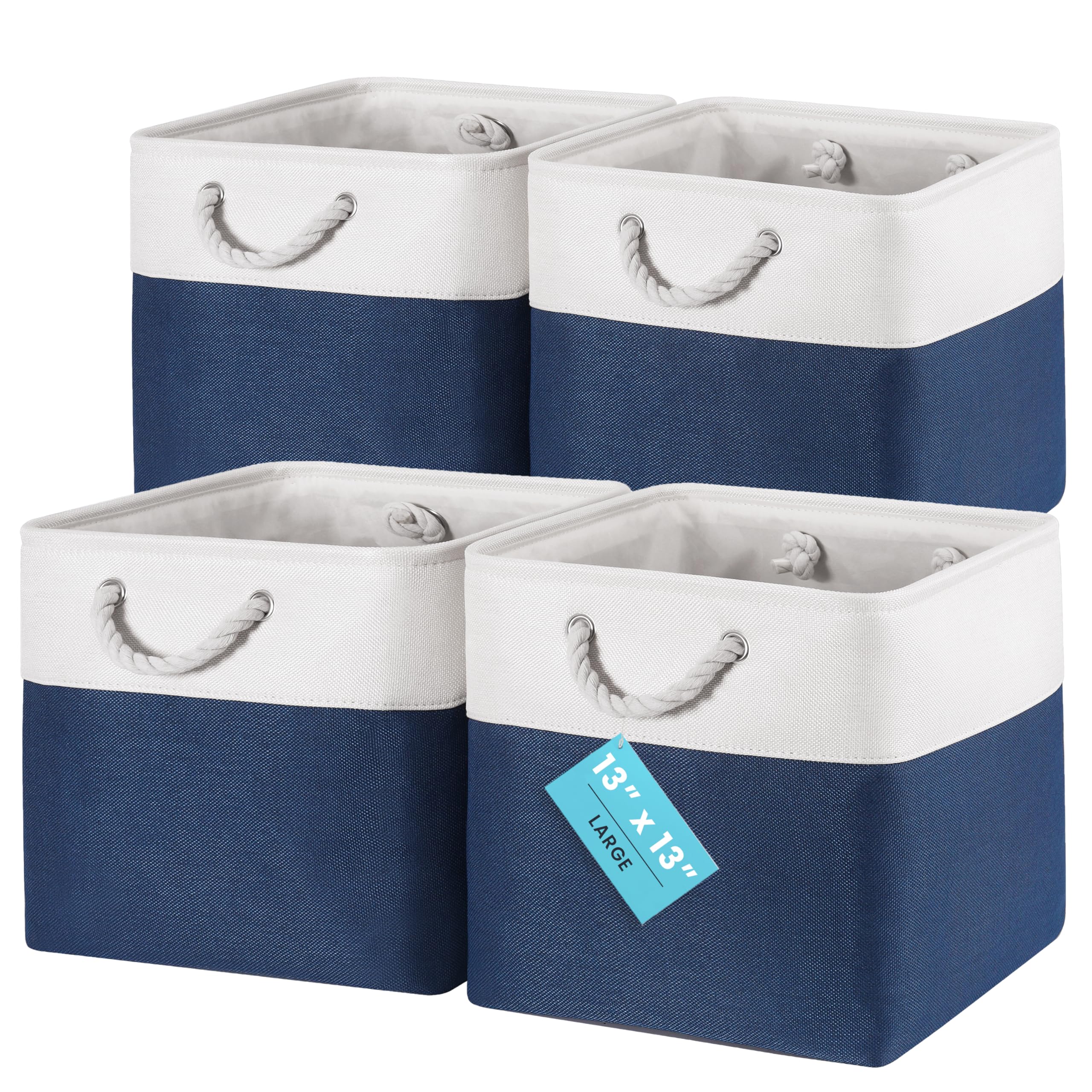 OrganiHaus Aufbewahrungsbox 30x30cm 4er-Set, Würfelkörbe aus Stoff mit Seilgriffen, Faltbare Aufbewahrungswürfel für Kallax Organizer, Ablagekörbe für das Kinderzimmer Navy blau