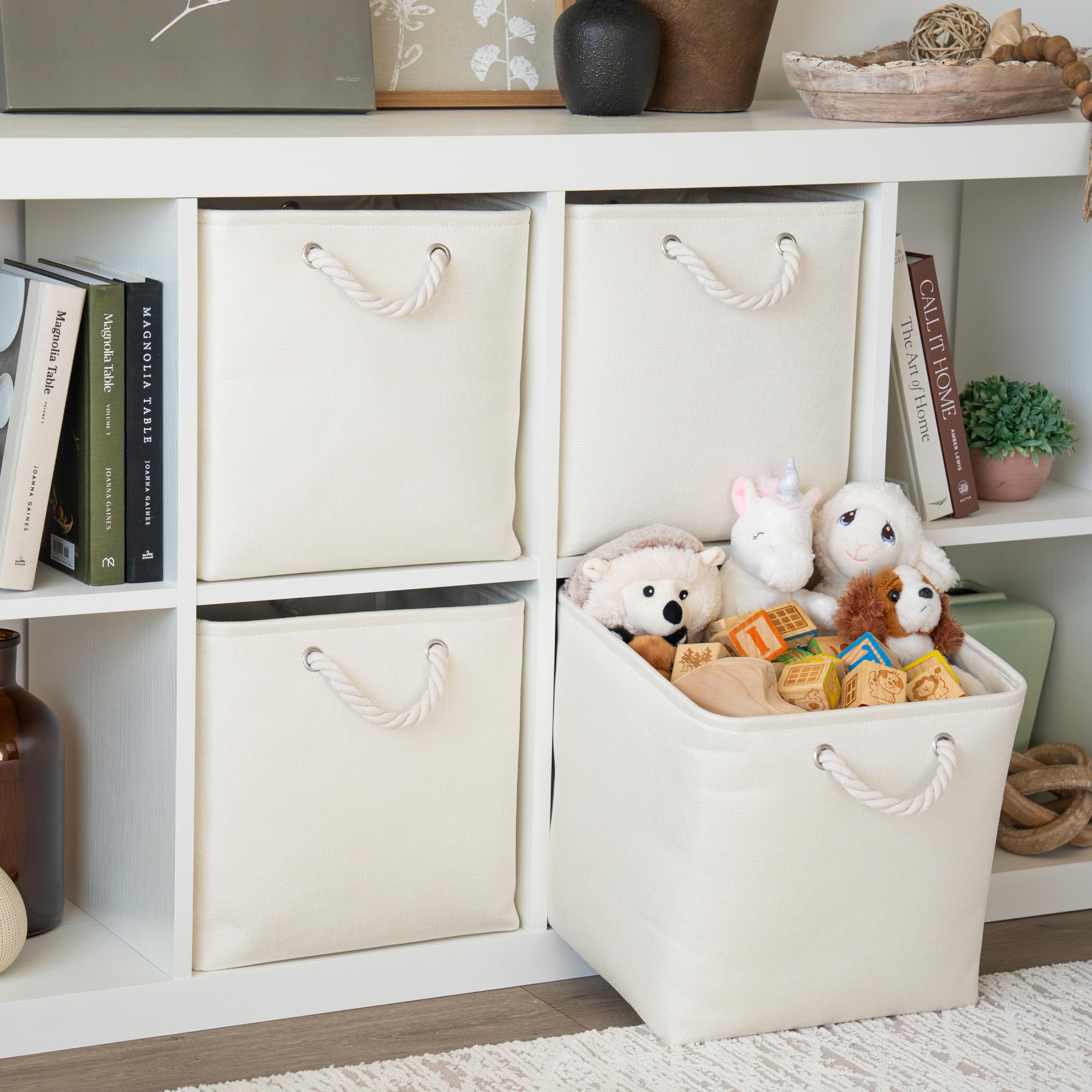 OrganiHaus Aufbewahrungsbox 33x33cm 3er-Set, Würfelkörbe aus Stoff mit Seilgriffen, Faltbare Aufbewahrungswürfel für Kallax Organizer, Ablagekörbe für das Kinderzimmer Elfenbeinweiss