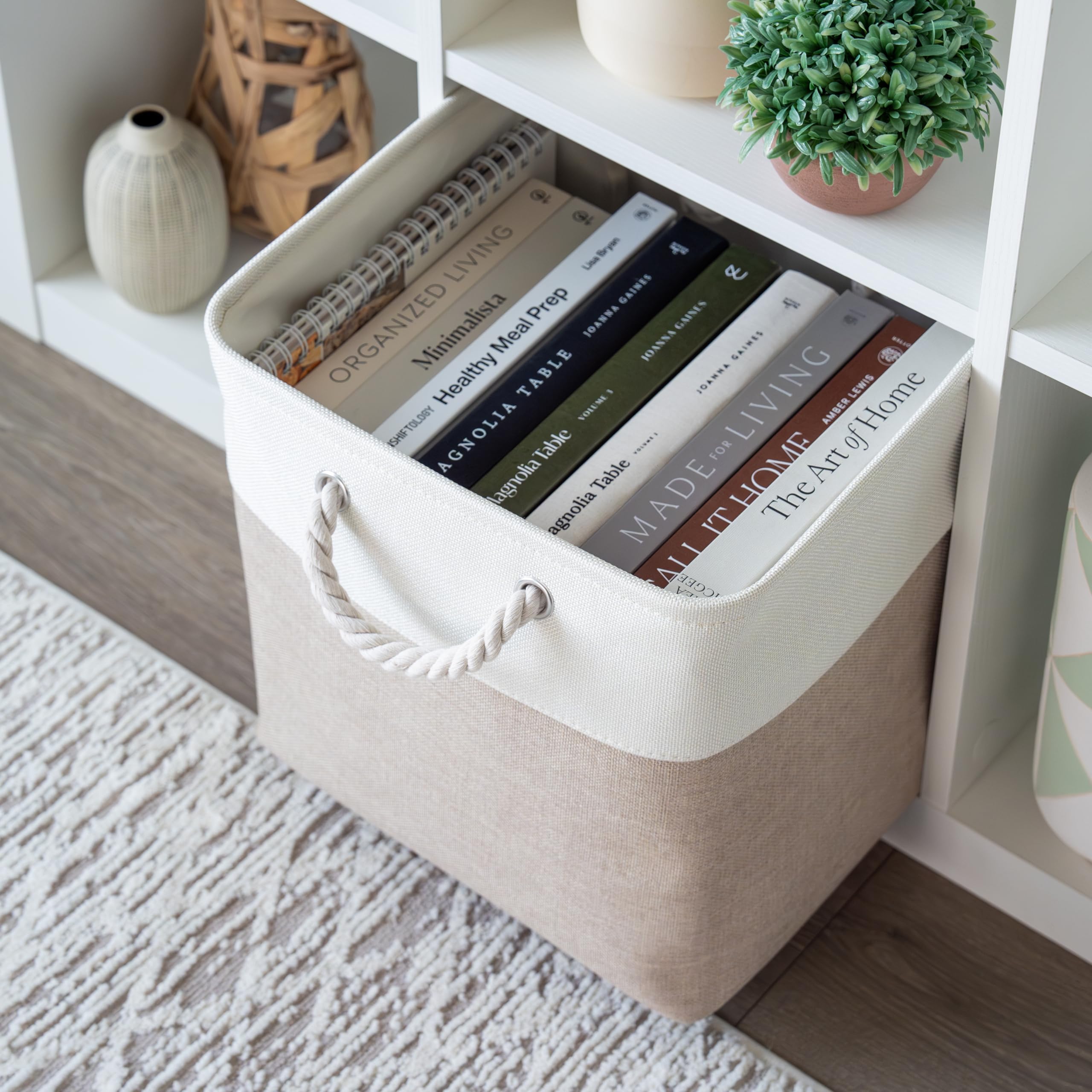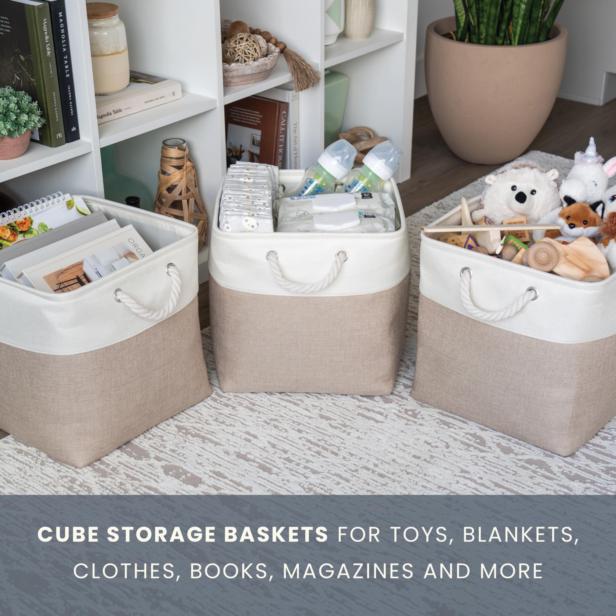 OrganiHaus Aufbewahrungsbox 33x33x33 cm 4er-Set, Aufbewahrungsbox Stoff, Kallax Boxen, Faltbare Regalkorb, Ablagekörbe für das Kinderzimmer, Körbe für Kallax, Aufbewahrungswürfel Beige/Weiss