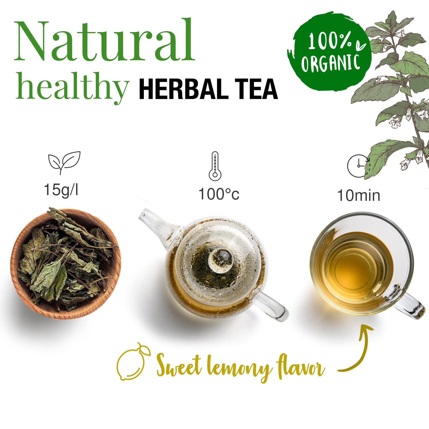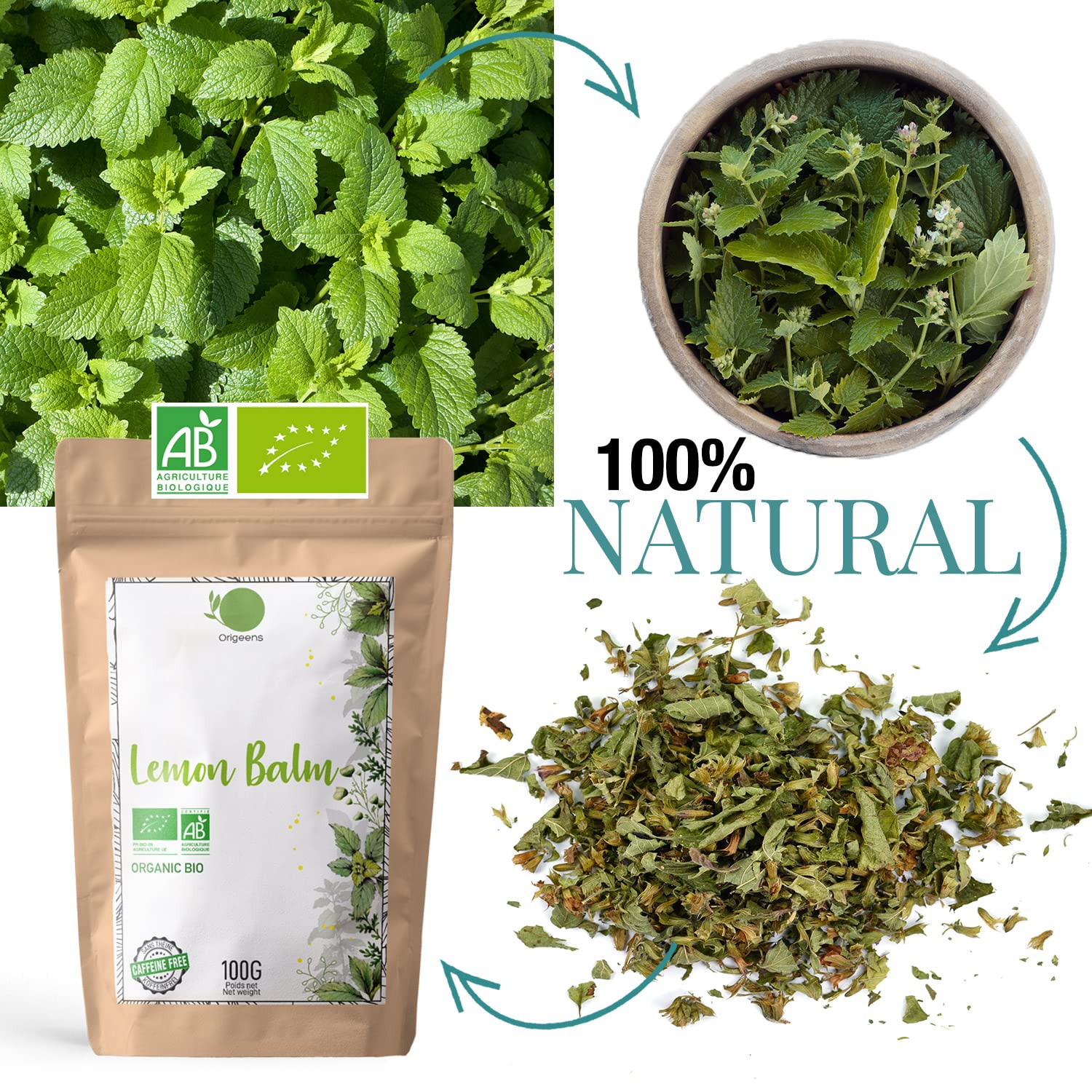 ORIGEENS ZITRONENMELISSE TEE BIO 100g | Melissentee Bio - Melissa Officinalis - Organic Lemon Balm Tea | Verdauungsfördernder und entspannender Kräutertee