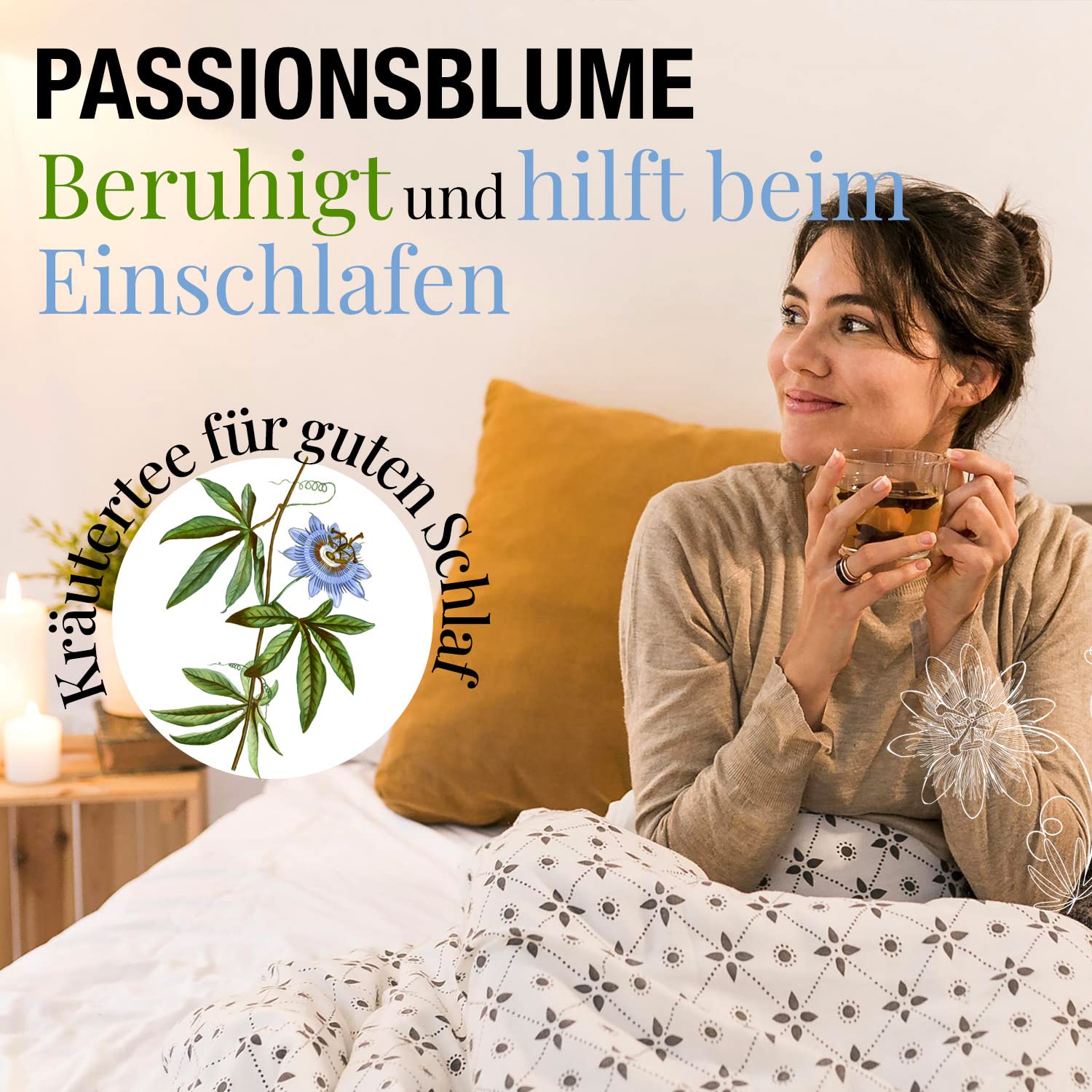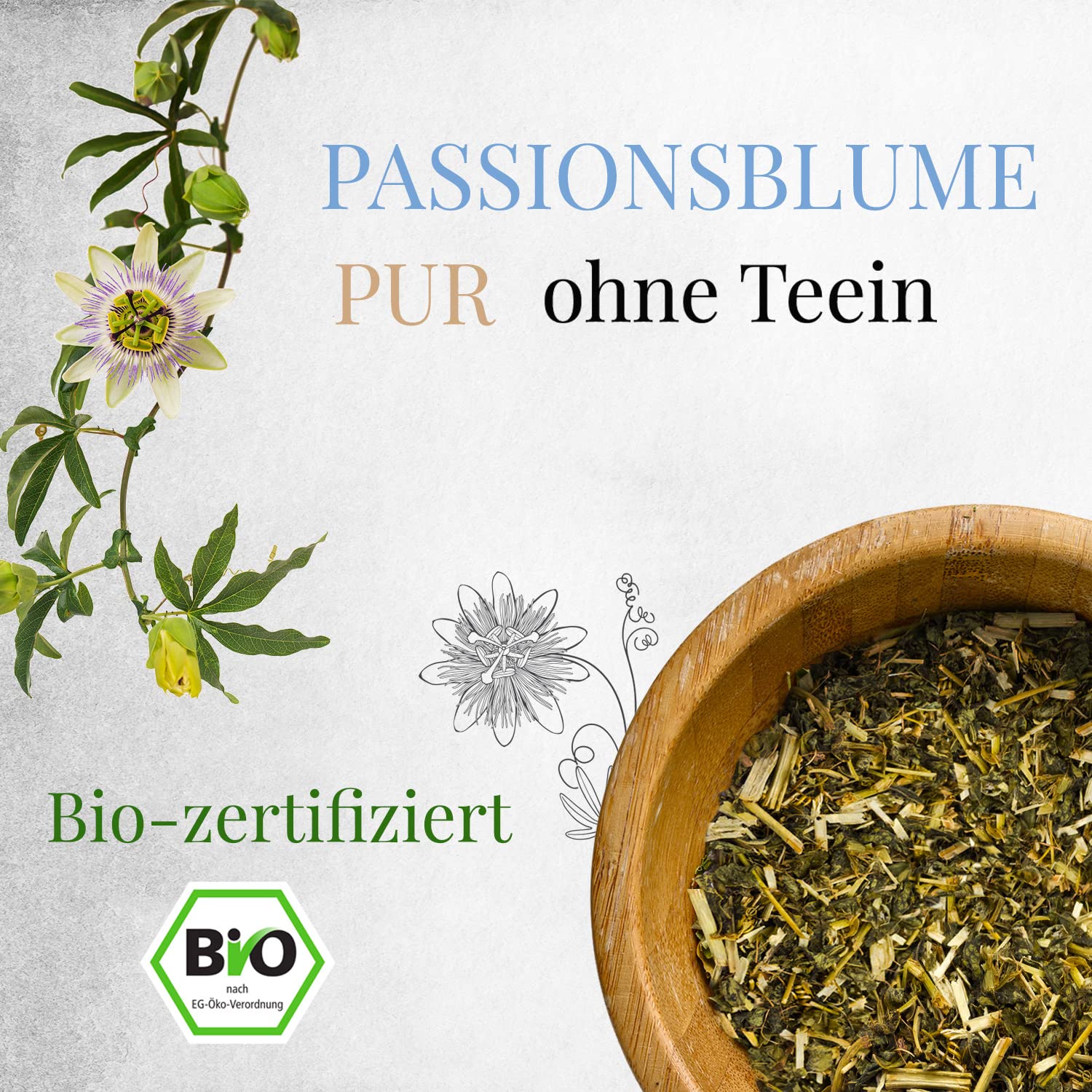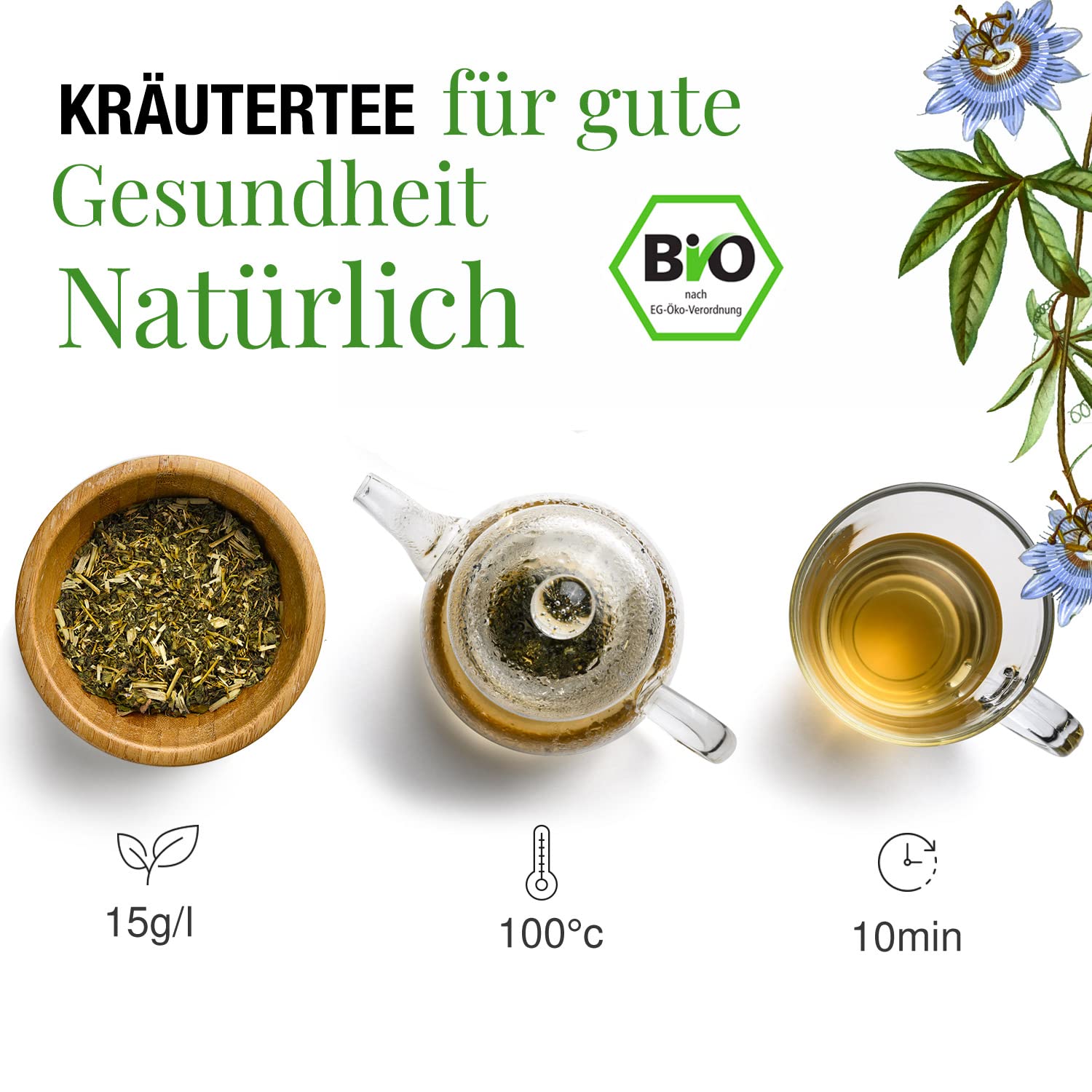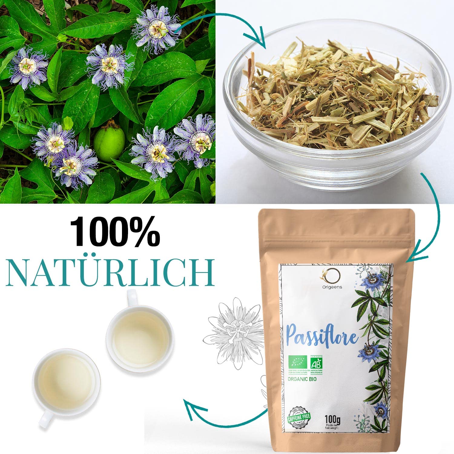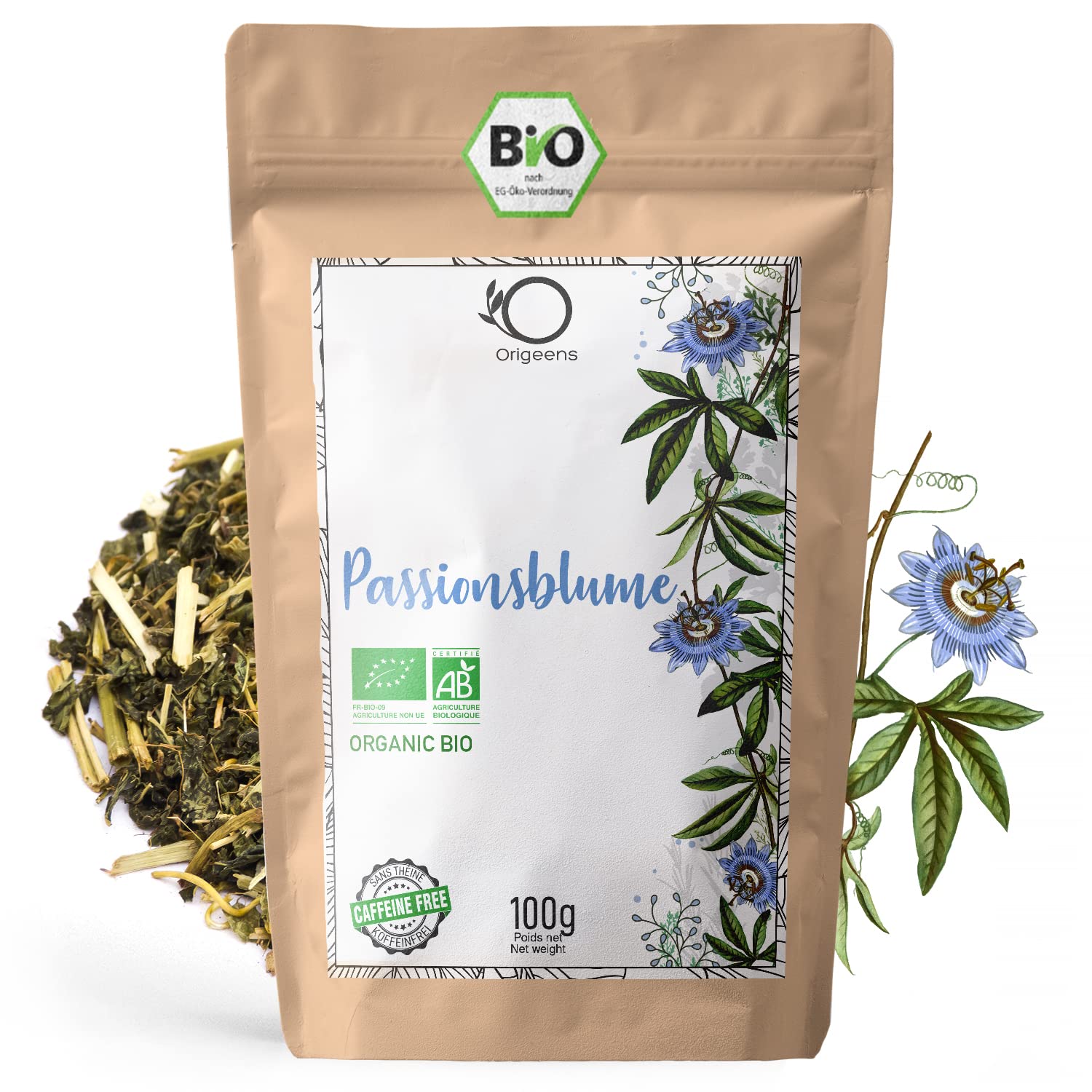 ORIGEENS BIO PASSIONSBLUME TEE 100g | Schlaf Tee und Anti Stress Tee | BIO Passionsblumenkraut, Oberirdische Teile (Blätter, Stängel, Blüten)