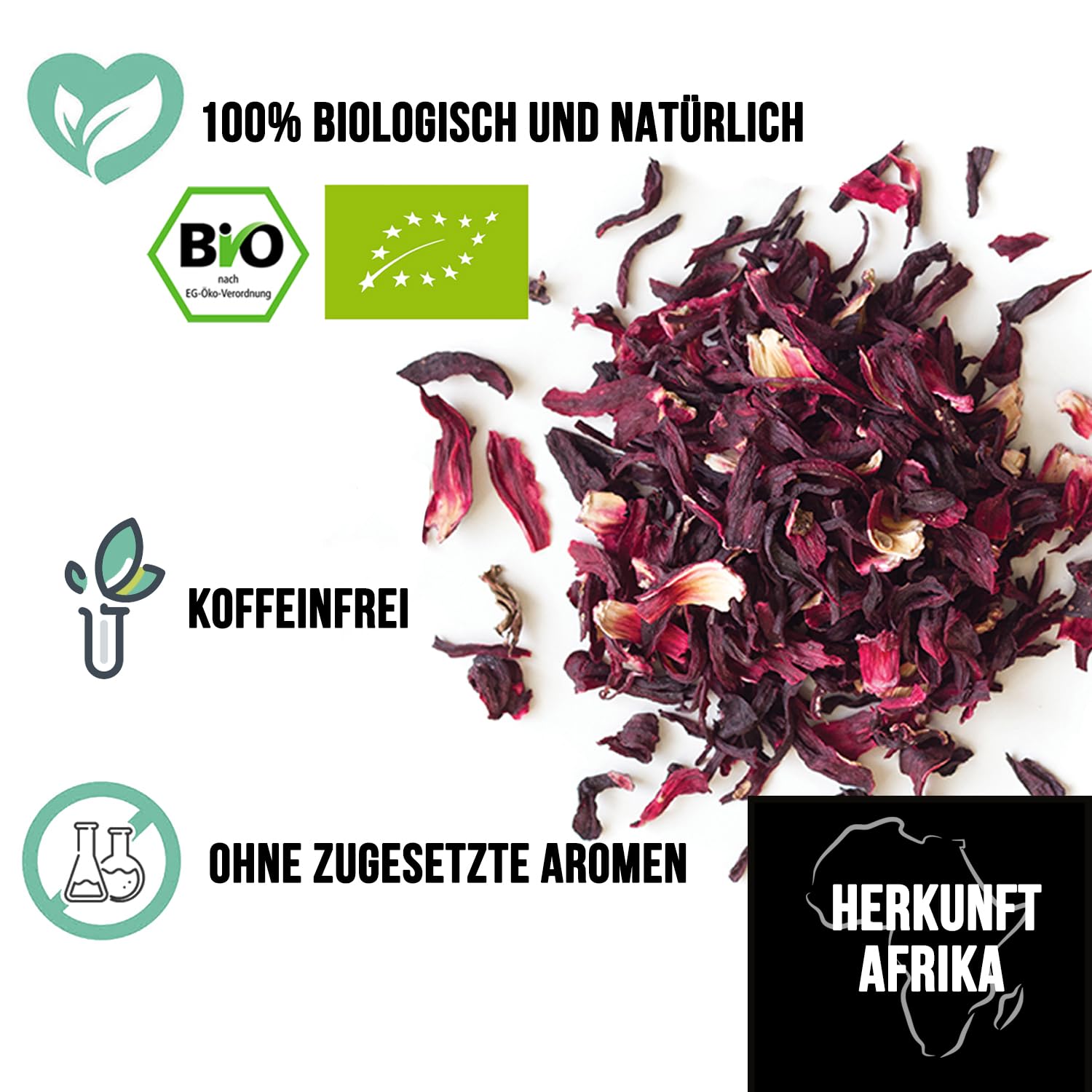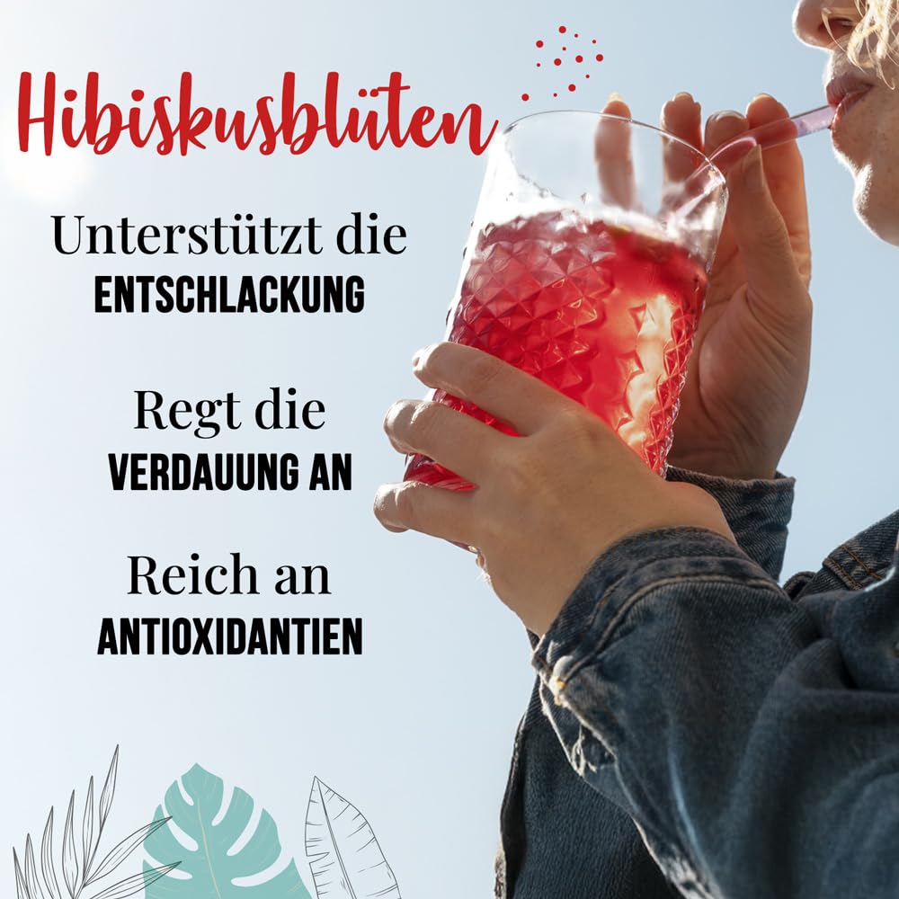 • ???? PREMIUM QUALITÄT - Unsere Hibiskusblüten werden von Hand geerntet, mehrere Tage lang auf natürliche Weise in der Sonne getrocknet und anschliessend sorgfältig sortiert. Dieser langwierige und aufwendige Prozess mit mehr als vier aufeinanderfolgenden Sortiervorgängen garantiert einen Hibiskus von aussergewöhnlicher Reinheit, leuchtender Farbe und zart-säuerlichem Geschmack