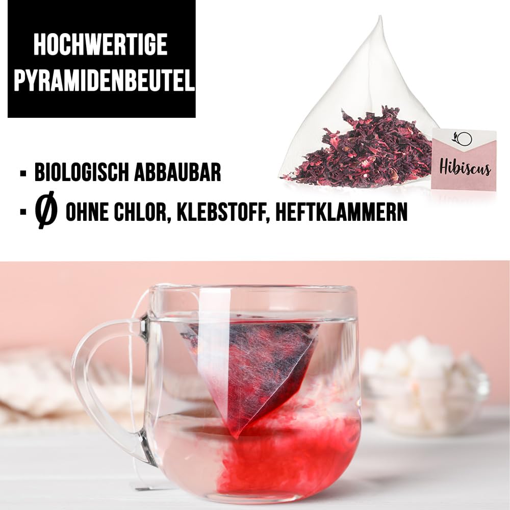 • ???? WOHLFÜHL TEE - Zusätzlich zu seiner reinigenden und simulierenden Wirkung, ist der Hibiskusblüten tee sehr Durst stillend und reich an Antioxidantien. Es ist der ideale Tee für eine Detox-kur und kann zu jeder Tageszeit getrunken werden (ohne Koffein)