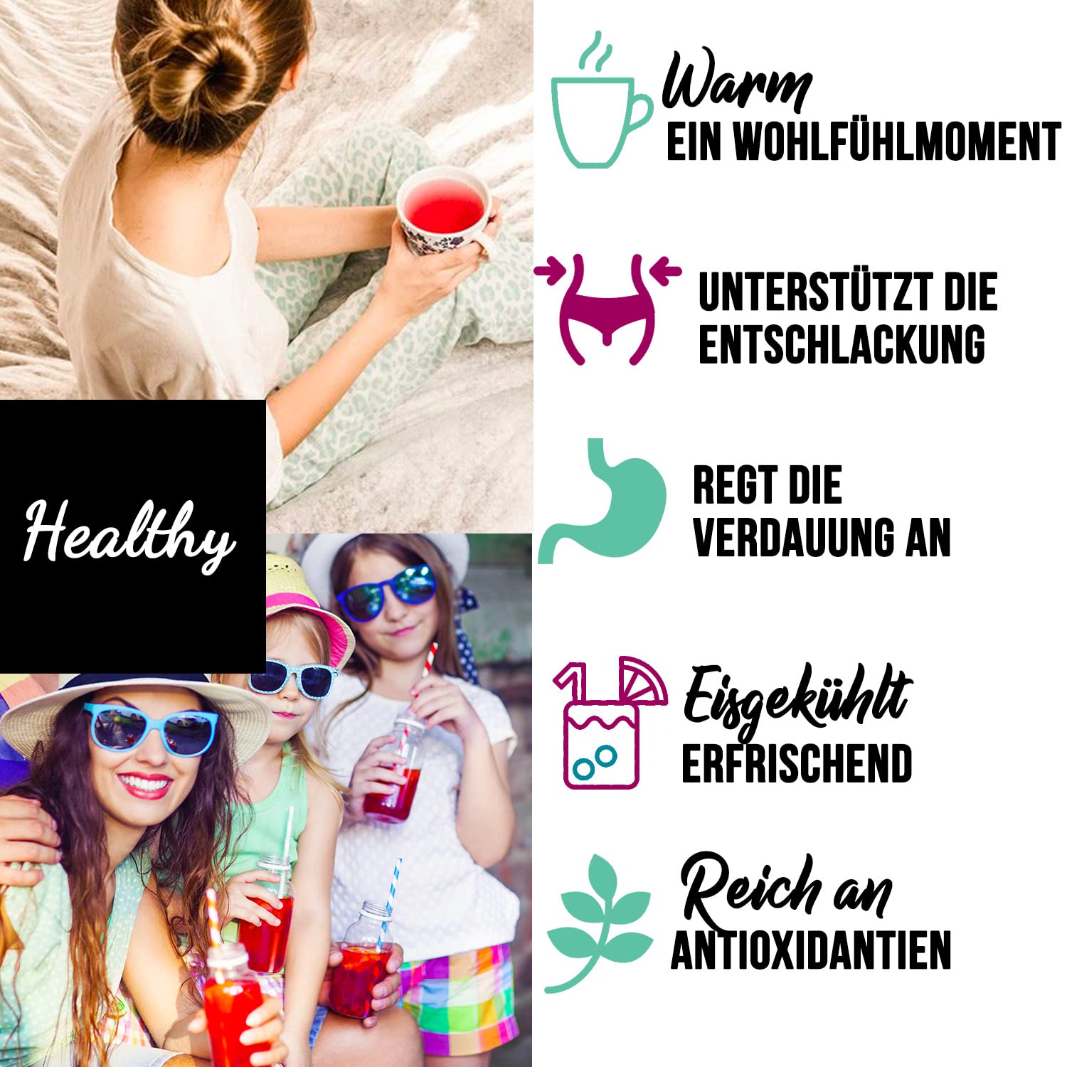 • ???? WOHLFÜHL TEE - Zusätzlich zu seiner reinigenden und simulierenden Wirkung, ist der Hibiskusblüten tee sehr Durst stillend und reich an Antioxidantien. Es ist der ideale Tee für eine Detox-kur und kann zu jeder Tageszeit getrunken werden (ohne Koffein)