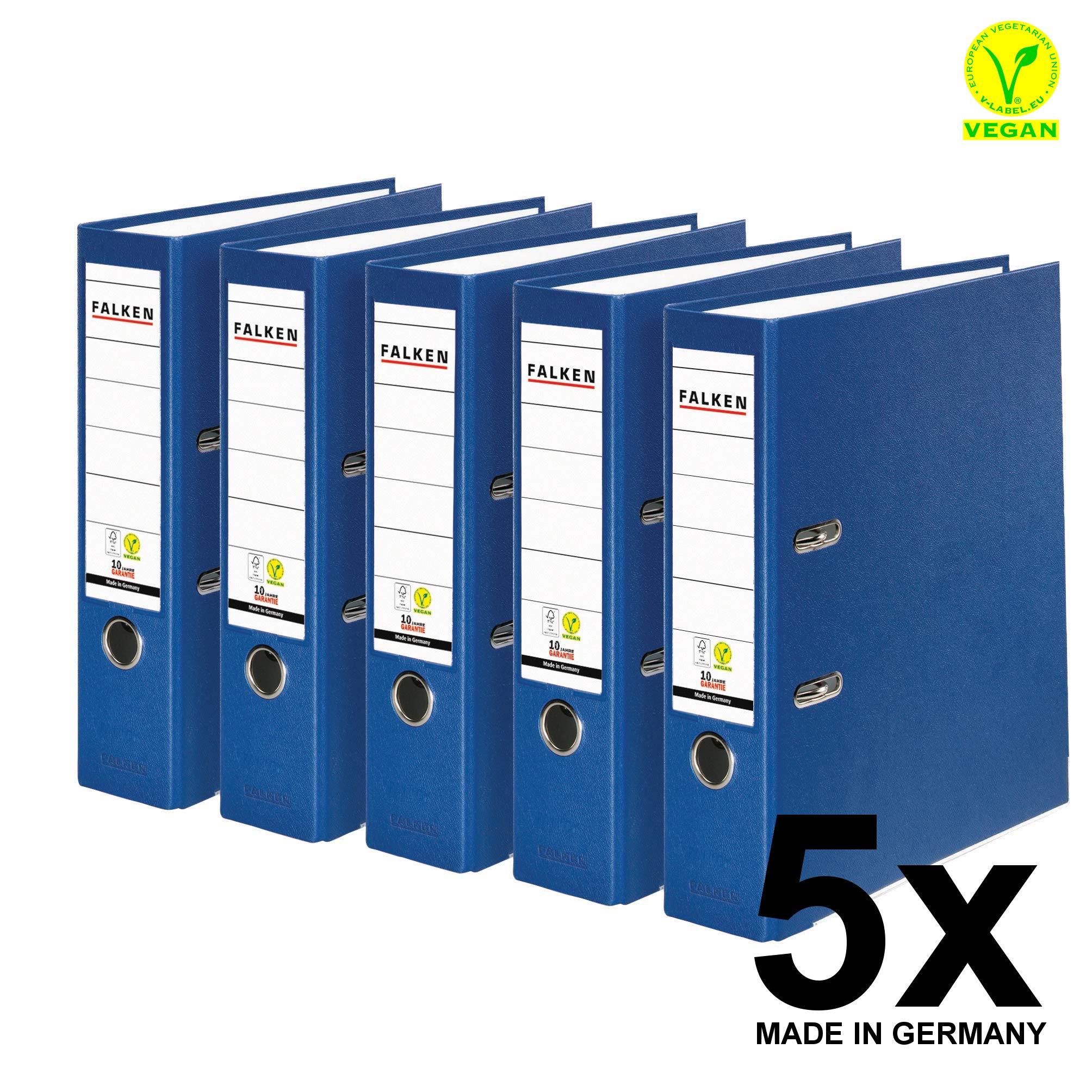 Original Falken 5er Pack PP-Color Kunststoff-Ordner. Made in Germany. 8 cm breit DIN A4 blau Vegan Ringordner Aktenordner Briefordner Büroordner Plastikordner Schlitzordner