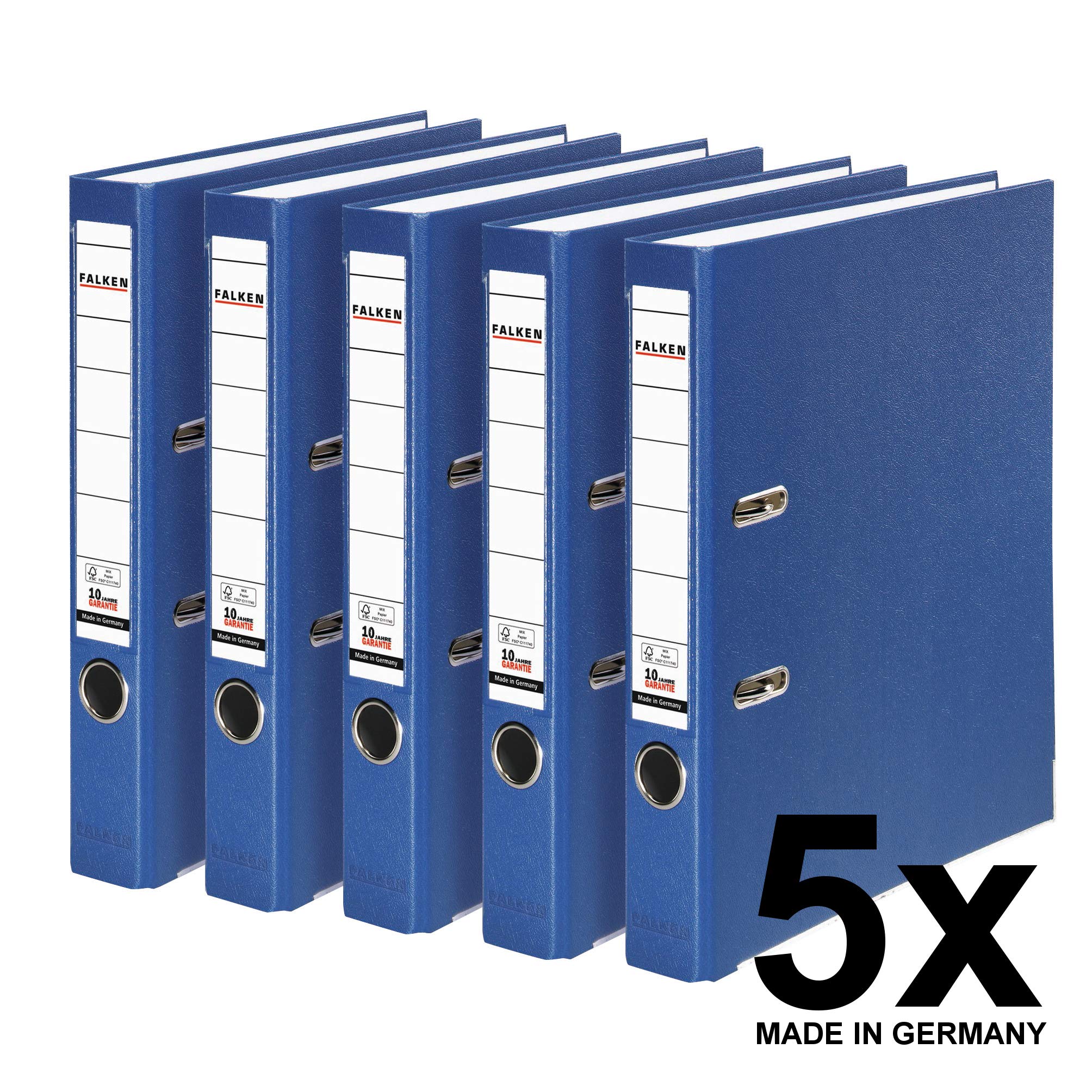 Original Falken 5er Pack PP-Color Kunststoff-Ordner. Made in Germany. 5 cm schmal DIN A4 blau Vegan Ringordner Aktenordner Briefordner Büroordner Plastikordner Schlitzordner