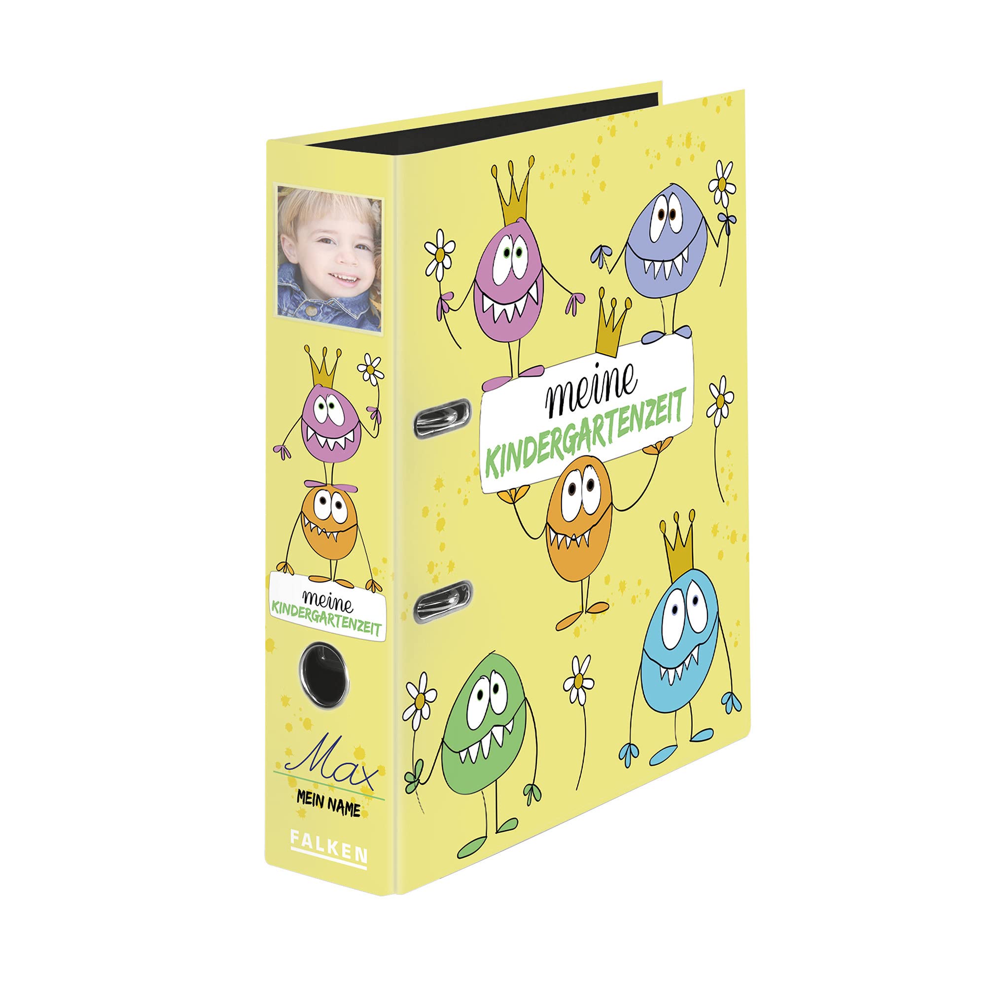 Original Falken Kindergarten-Ordner mit Einstecktasche. Made in Germany. 8 cm breit DIN A4 Motiv Monster Meine Kindergartenzeit Motivordner Sammelordner Sammelalbum Portfolio Ordner für Kinder