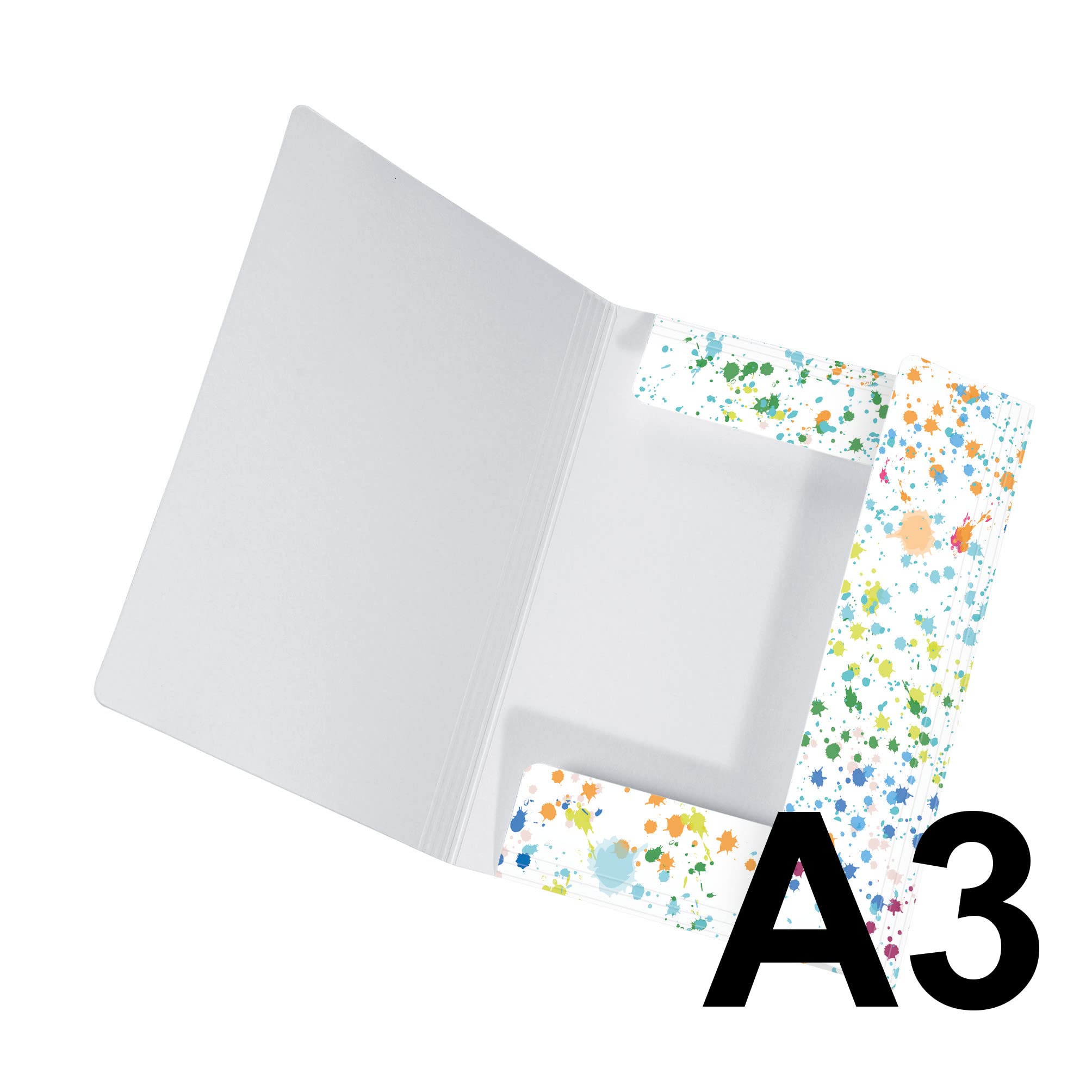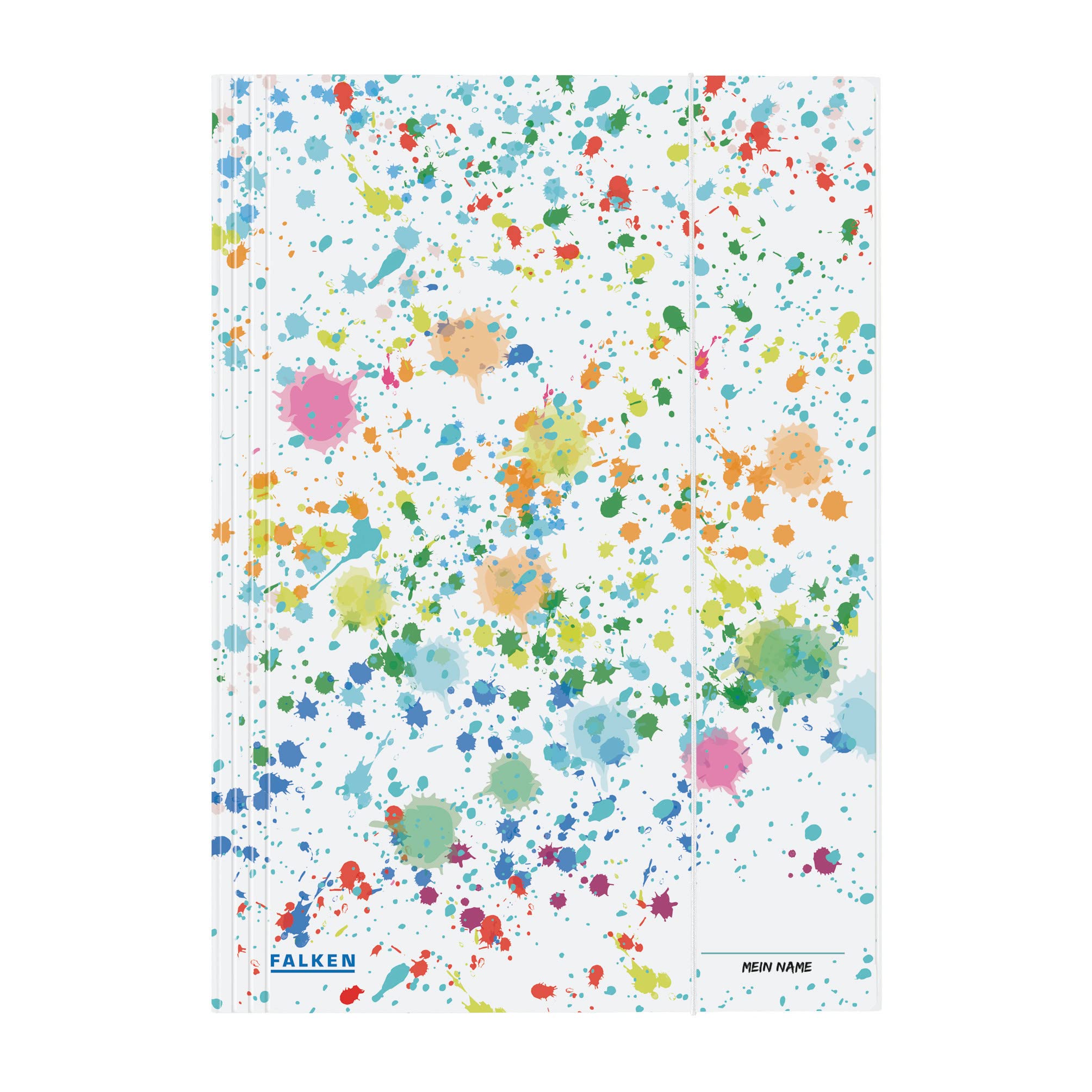 Original Falken 10er Pack Sammelmappe Kinder. Aus extra starkem Karton mit 3 Klappen und Gummiband für DIN A3 Motiv Kleckse Aufbewahrungs-Zeichen-Mappe für die Schule
