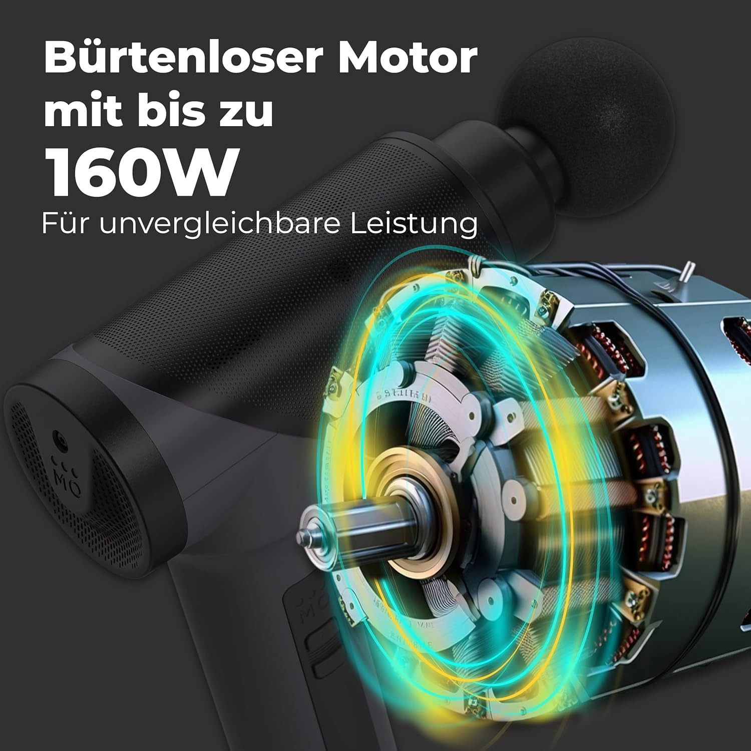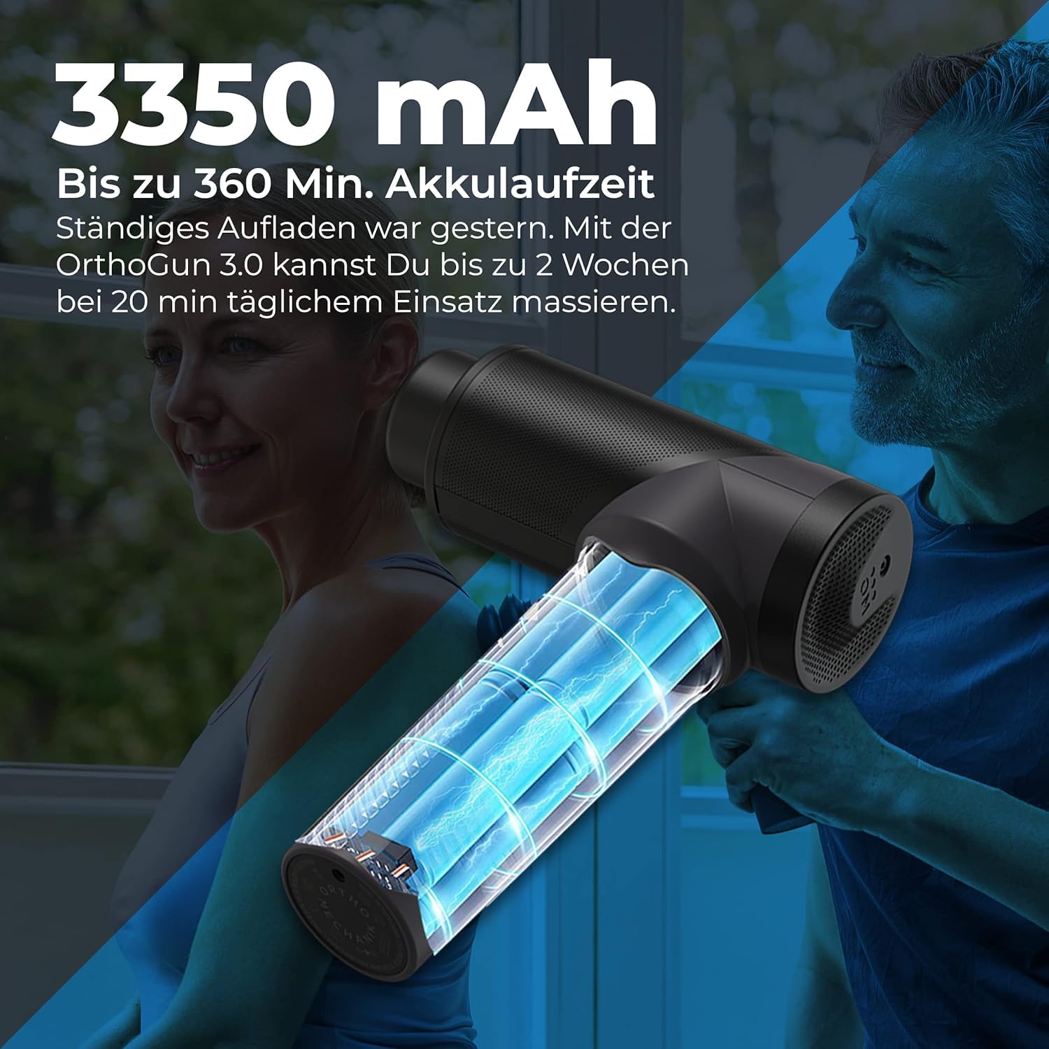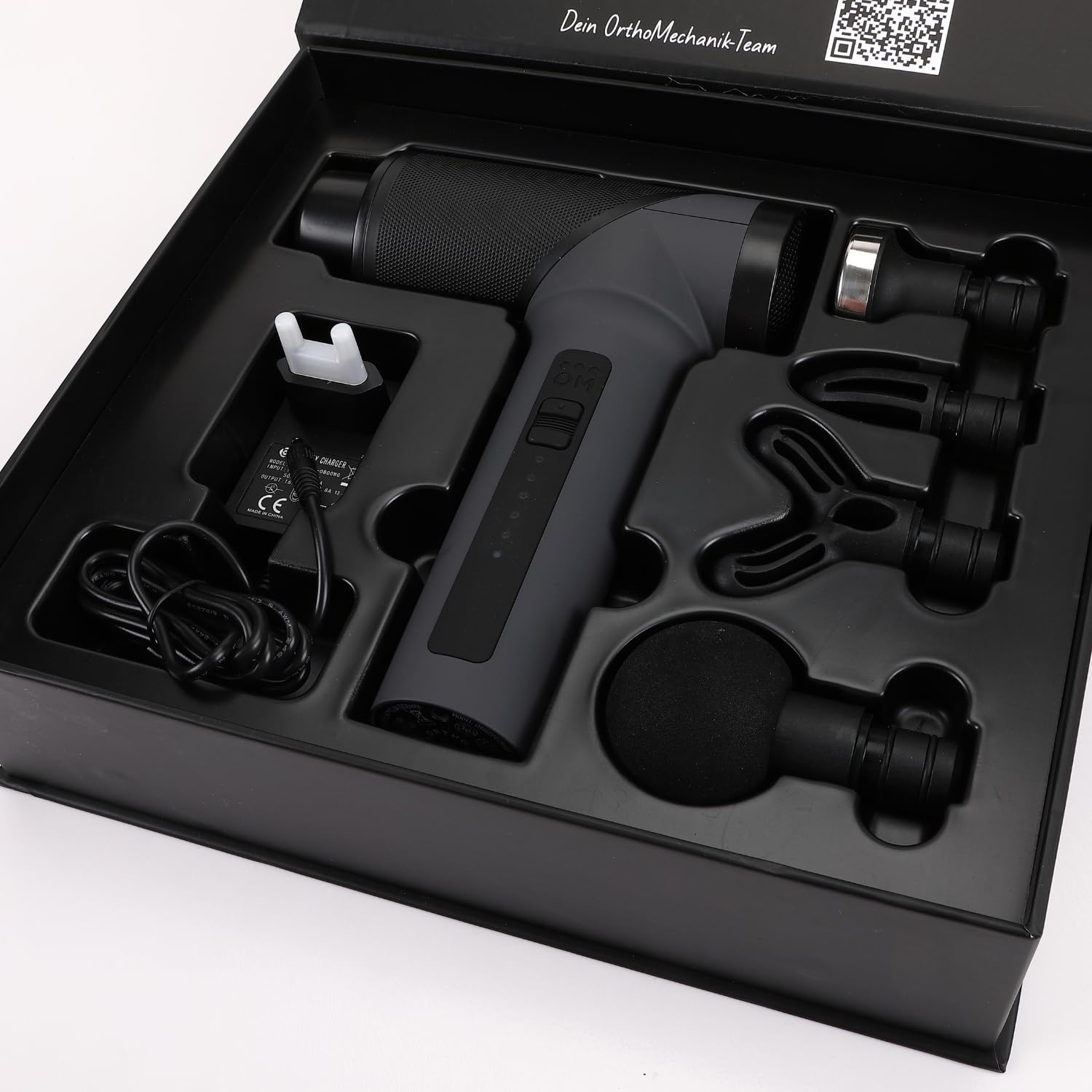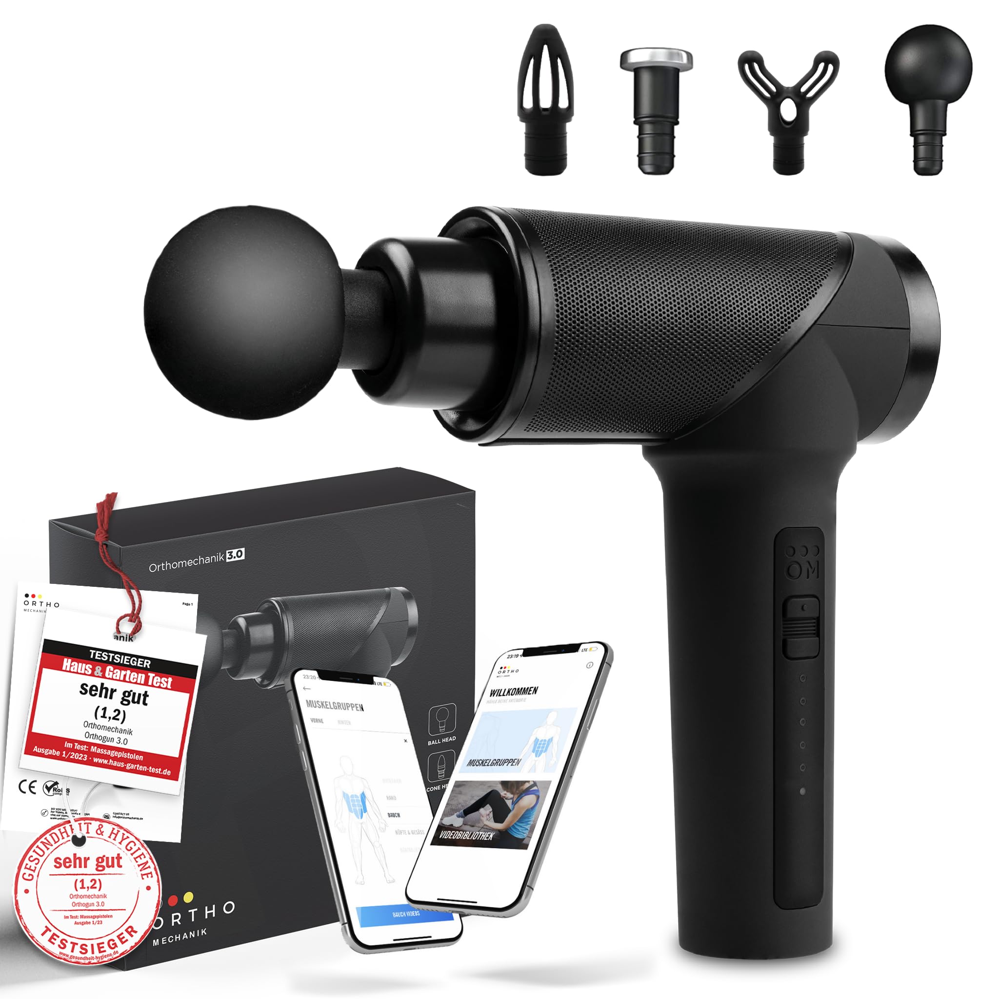 OrthoMechanik® 3.0 | OrthoGun ohne Koffer | Massagepistole mit App & 4 Aufsätzen | 160W Motor & 5 Intensitäten für Schmerzlinderung & Entspannung | Bis zu 360 Min. Laufzeit