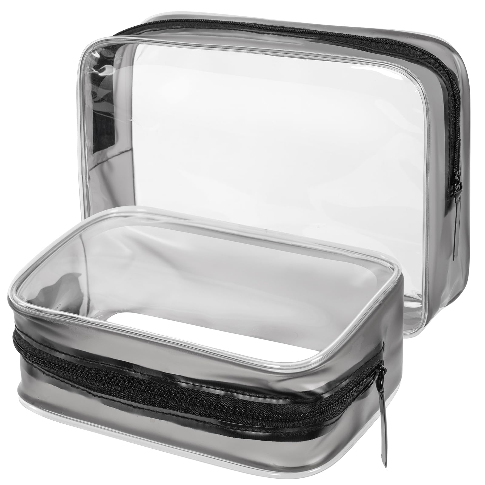 OSDUE 2er Set transparente Kulturbeutel aus PVC, wasserdichte Flugzeug-Kosmetiktaschen (Schwarz)