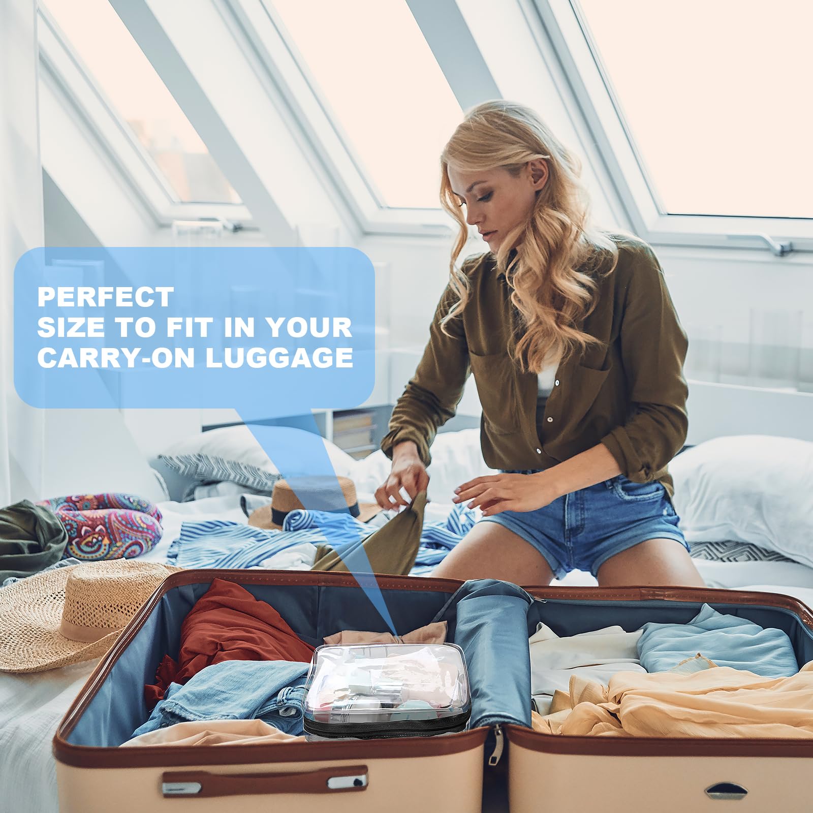 Der uebersichtliche Innenraum bietet ausreichend Platz fuer Kosmetikartikel, Pflegeprodukte, Fluessigkeiten, Shampoo, Zahnbuerste und weitere Badezimmerutensilien. Durch das transparente Material ist der Inhalt sofort sichtbar, was besonders bei Sicherheitskontrollen am Flughafen Zeit spart und fuer Ordnung sorgt.
