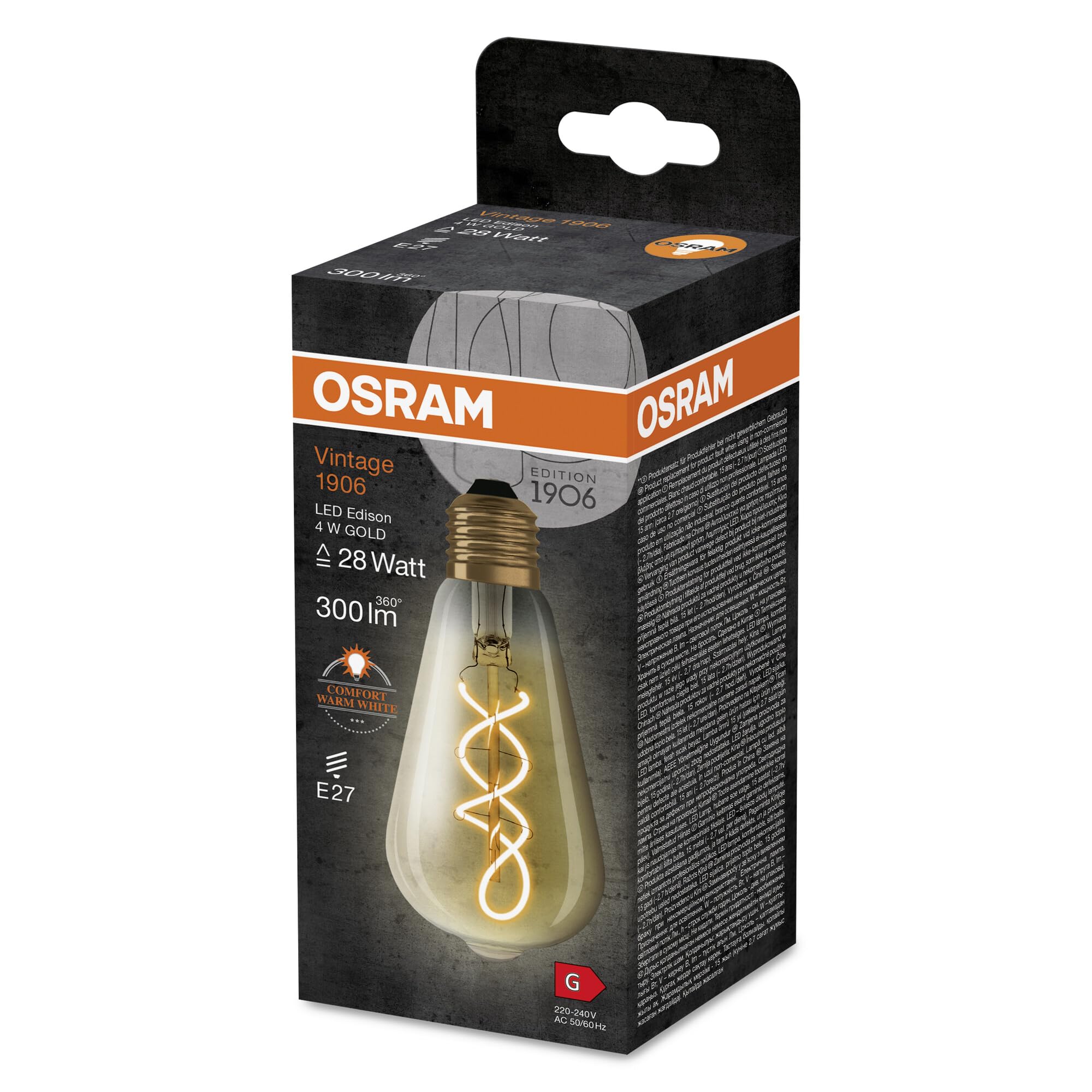 Osram LED-Lampen, Vintage-Edition, 28 Watts Ersatz, E27, ST64-shape, 2000 Kelvin, Warm Comfort Light, Klares Glas, single Pack