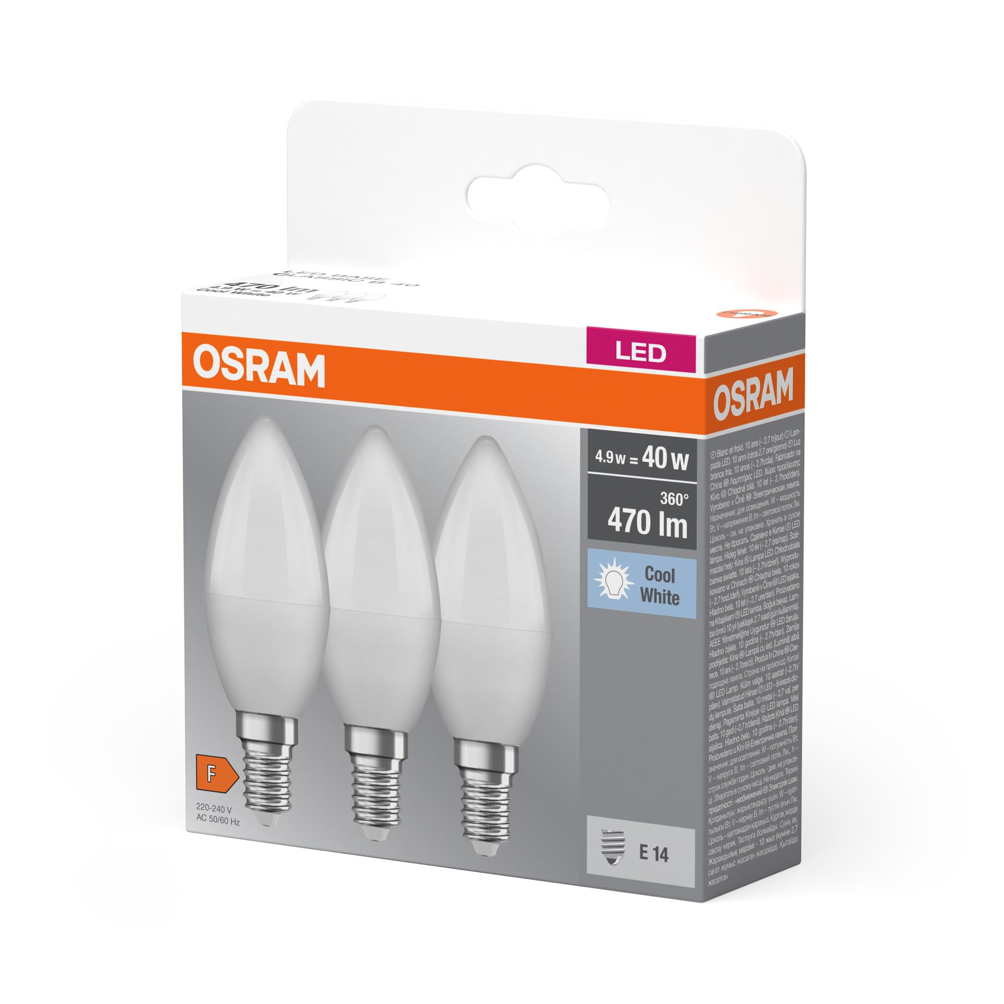 Osram LED BASE Classic B40, matte Filament LED-Lampen aus Glas für E14 Sockel, Kerzenform, Kaltweiss (4000K), 806 Lumen, Ersatz für herkömmliche 40W-Glühbirnen, 3er-Box