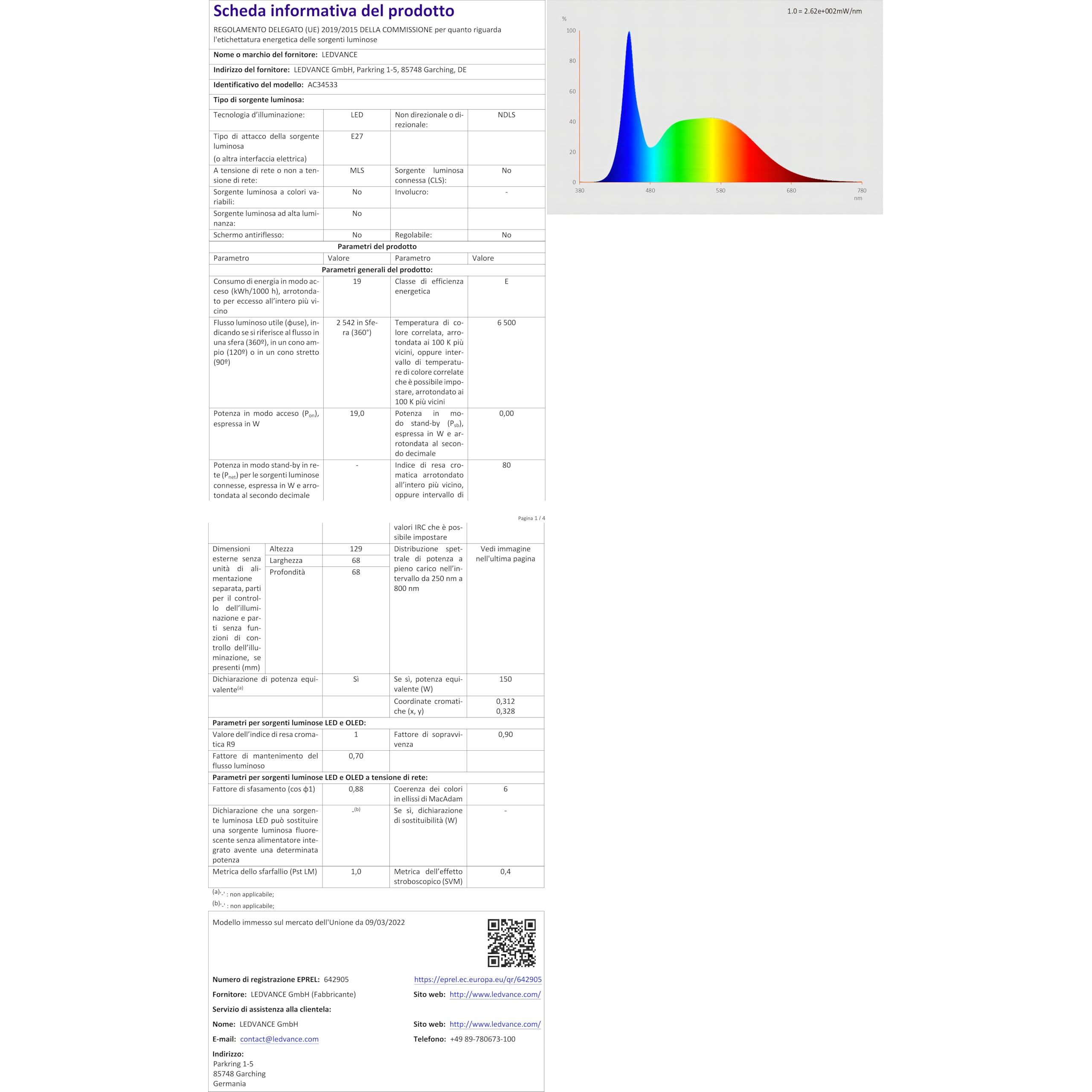 Osram LED-Lampen, klassische Kolbenform, 150 Watts Ersatz, E27, A-shape, 6500 Kelvin, Kaltes Tageslicht, Matt, single Pack