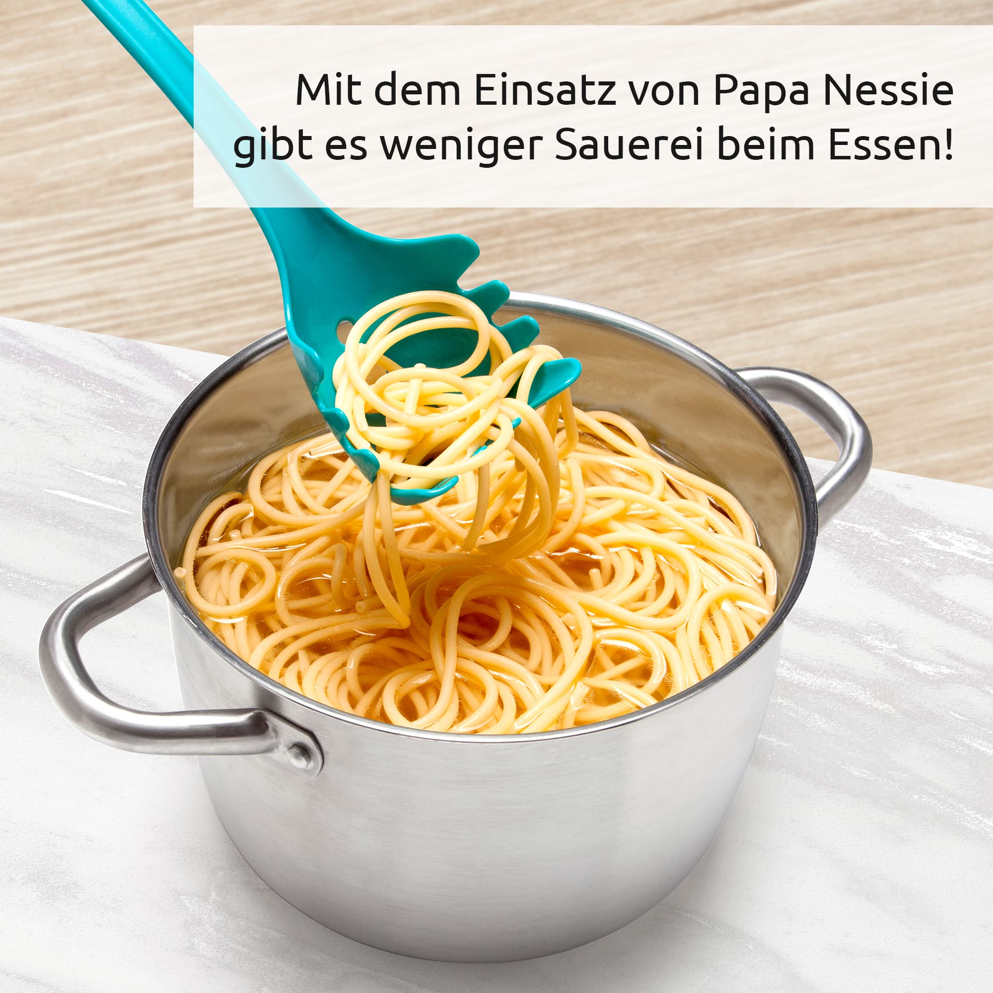 OTOTO Papa Nessie Spaghettilöffel - Nudellöffel Lebensmittelecht und BPA-Frei - Hitzebeständiger Spaghetti Nudelschöpfer mit Zinken - Nudelkelle aus Kunststoff Masse: 28,5 x 8,5 x 5,5 cm