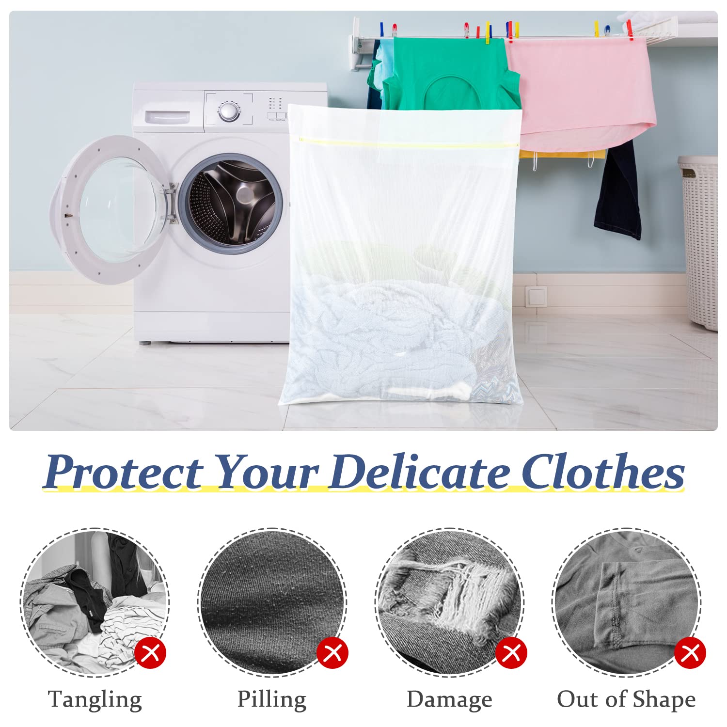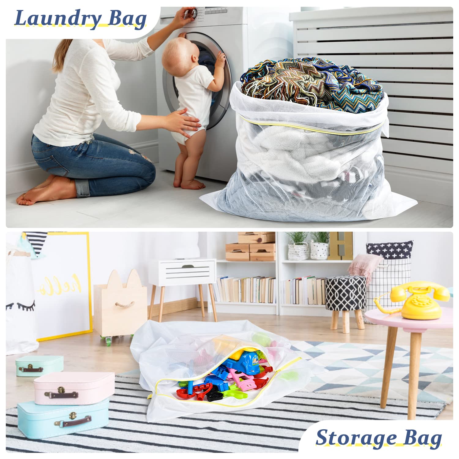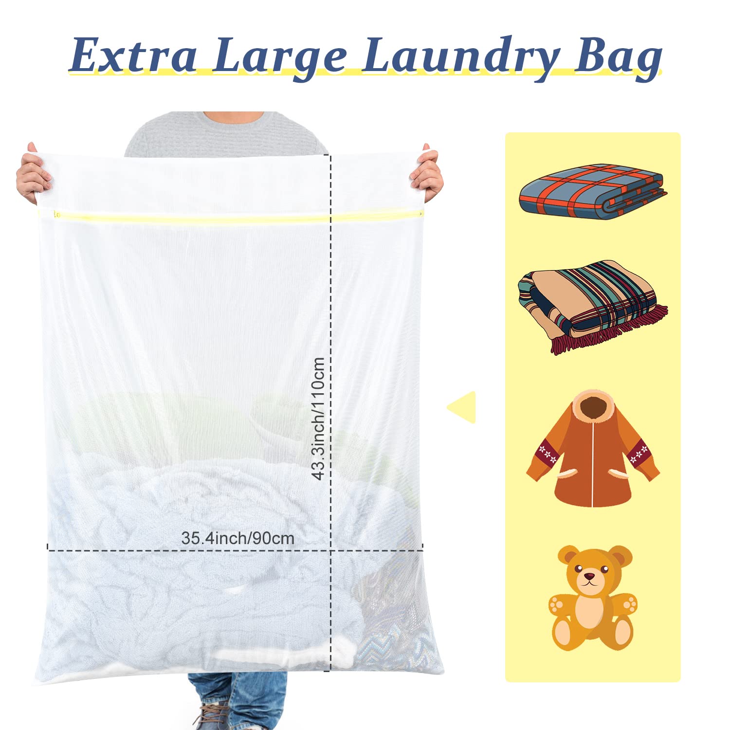 OTraki Wäschenetz, 2 Stück 90x110cm Wäschesack Gross für Waschmaschine, Wiederverwendbare Wäschenetze mit Reissverschluss, Wäschenetze für Gardinen Haustier Plüschtier Waschmaschine (XXL)