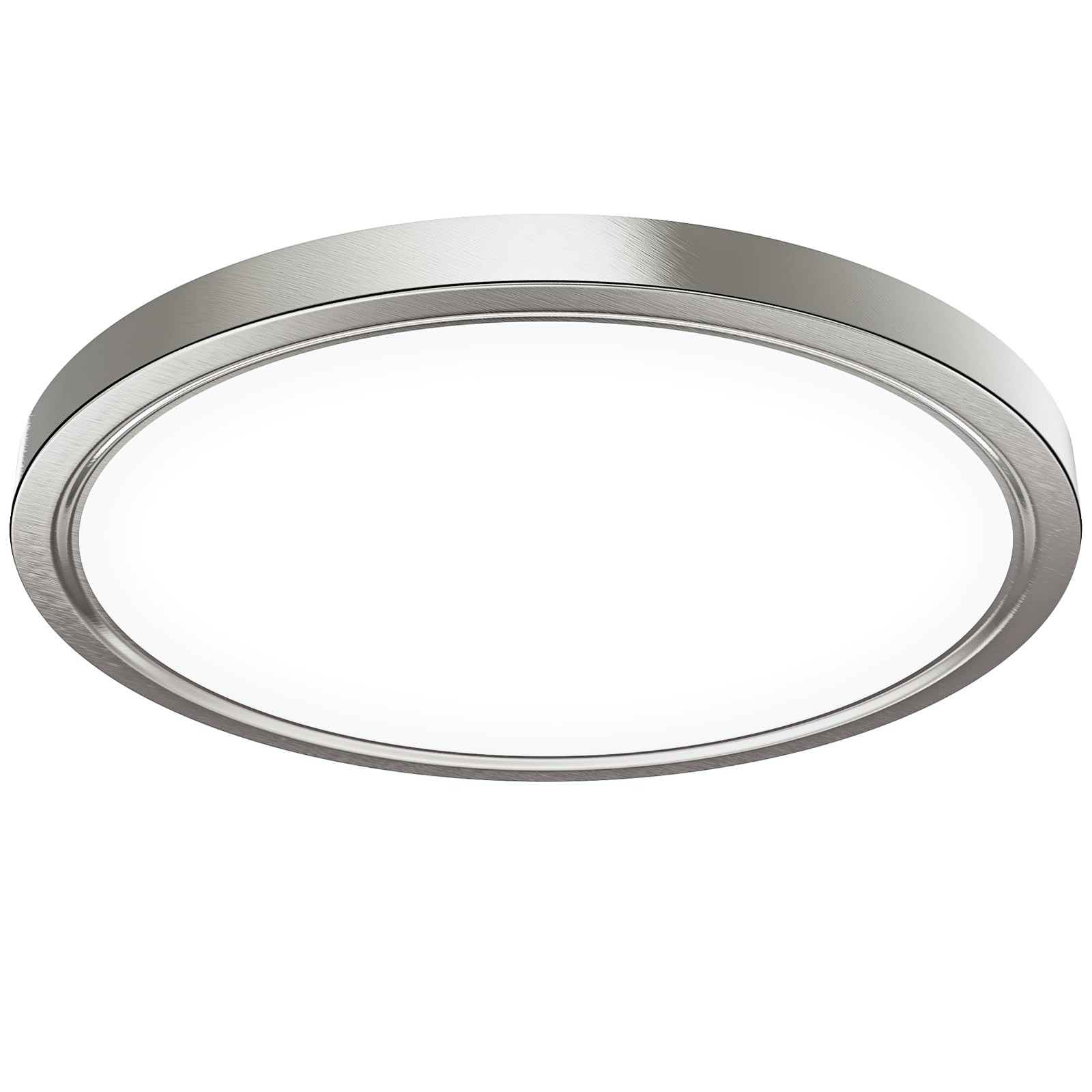 OUILA Unterputz LED Deckenleuchte Flach Rund - Ø30CM Deckenlampe Gebürstetes Nickel 24W 4000K 2600LM IP44 Wasserdichte Badezimmer lampe, Küchenlampe Neutralweiss für Küche Bad Schlafzimmer Flur Keller