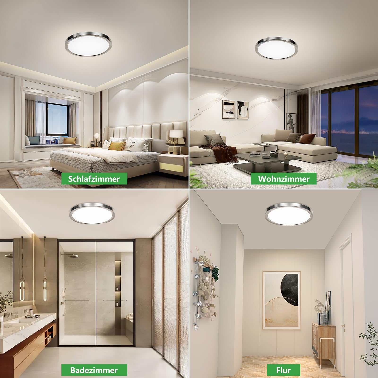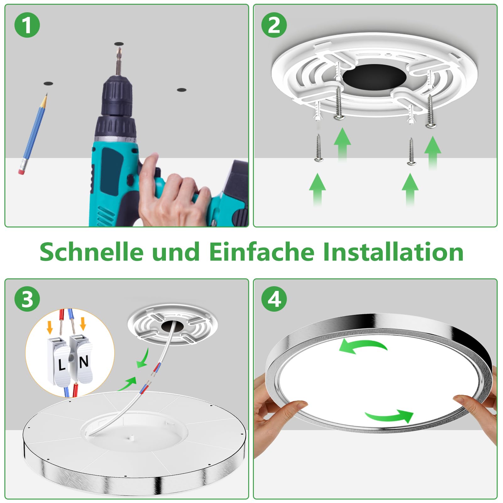 Super Hell und Energiesparend: Die OUILA LED deckenleuchte bietet 2600 Lumen Helligkeit und 4000K neutralweiss Lichtfarbe, die Ihren Raum mit ausreichend hellem und gleichmässig neutralweiss Licht versorgen kann. Und die 24W LED deckenleuchte 4000K kann die herkömmliche 200W Glühlampe perfekt ersetzen, was sehr energiesparend ist und Ihnen über 90% der Stromkosten einspart