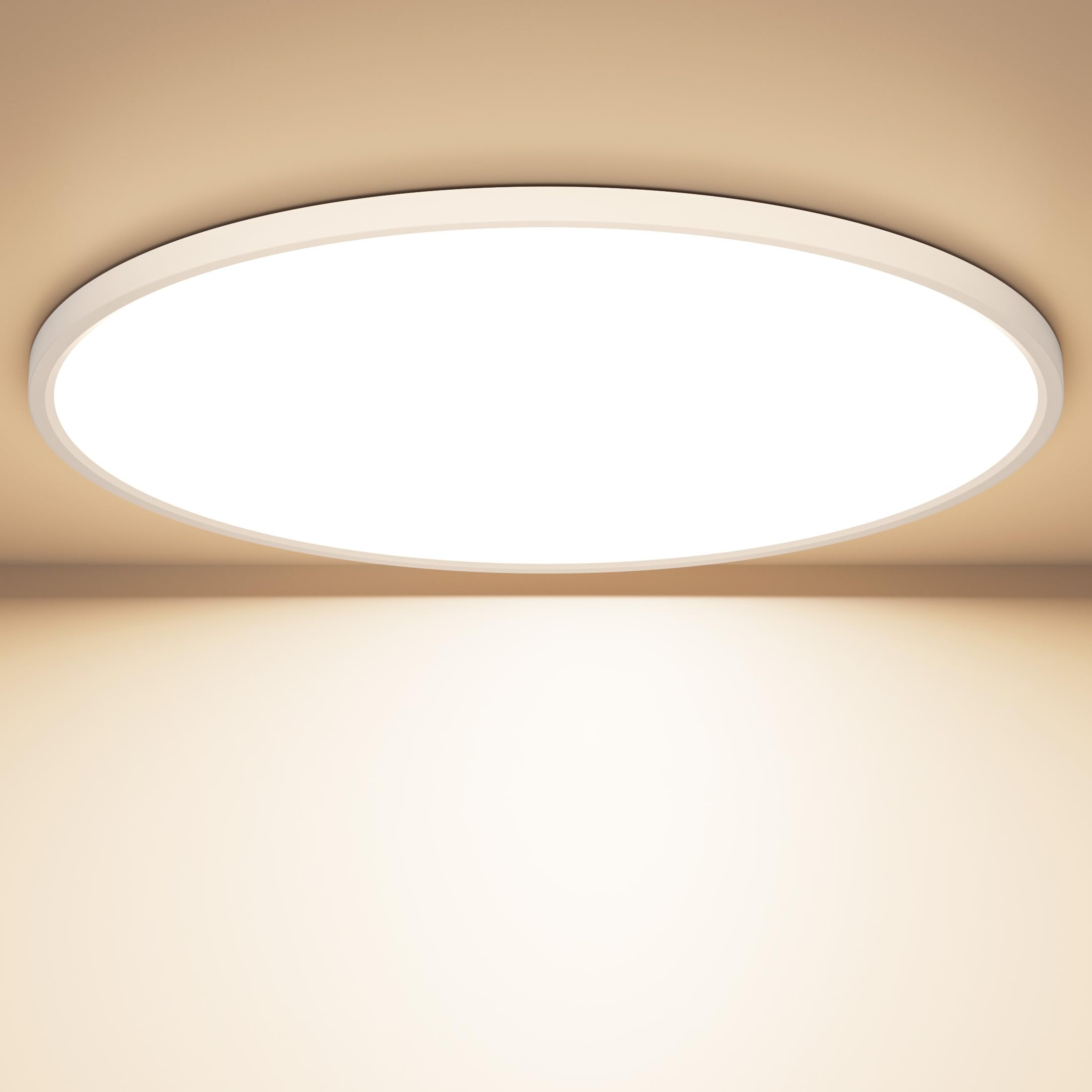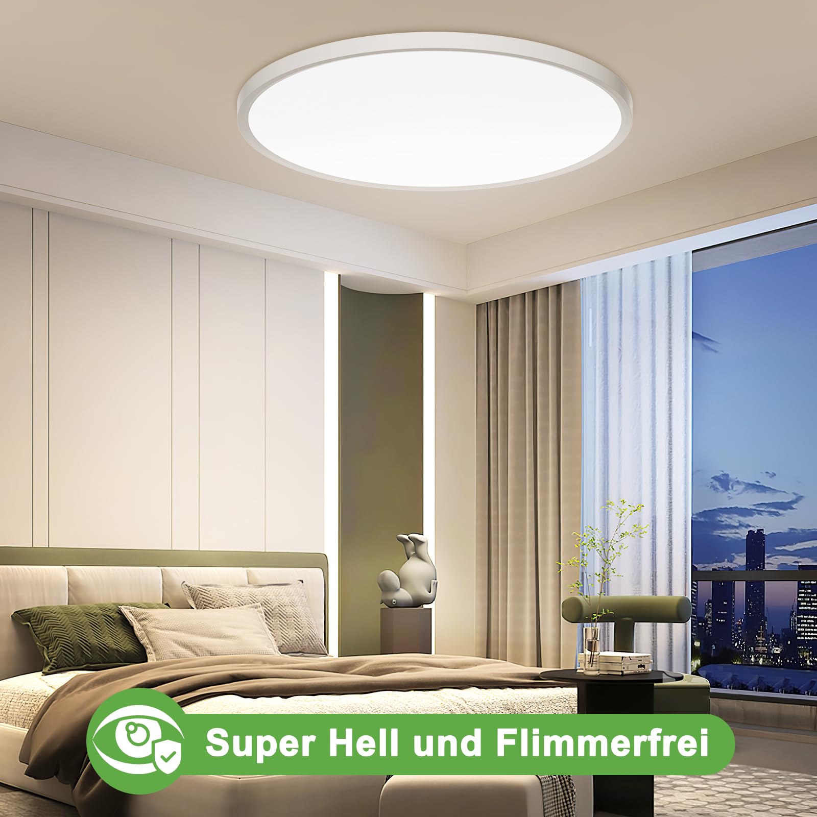 Wo OUILA ist, ist Licht: Bei OUILA tun wir unser Bestes, um unseren Kunden die energieeffizienteste, zuverlässigste und sicherste Beleuchtung zu bieten. Die LED deckenleuchte von OUILA ist modern im Aussehen, hell im Licht, hochwertig, einfach zu installieren und vielseitig einsetzbar, sehr gut geeignet für verschiedene Räume in Ihrem Zuhause, wie Küche, Badezimmer, Bad, Wohnzimmer, Flur, Schlafzimmer, Treppe, Toilette, Abstellraum. OUILA LED Deckenleuchte 48W-4800LM-4000K 1.LED deckenlampe spart deutlich Energie Ersetzen Sie Ihre 250W Glühbirnen durch unsere 48 Watt LED deckenleuchte und sparen Sie 85% Ihrer Stromrechnung. Die ultralange Lebensdauer von 25000 Stunden reduziert die Häufigkeit und die Kosten des Lampenwechsels. 2.Das Licht ist gleichmässig und hell 4200LM Lichtleistung, hell genug Licht, perfekt für einen Raum von 20 - 30 m² 3.Blendschutz Nehmen Sie eine hochwertige und besser lichtdurchlässige weisse Schale flaches Design an, verbessern Sie gleichzeitig helleres Licht, keine Blendung oder Flimmern, schützen Sie Ihre Augen und die Ihrer Familie. Elegantes Design passend für verschiedene Beleuchtungsstile. 4.Hoher Farbwiedergabeindex Haben Sie einen hohen Farbwiedergabeindex von CRI80+, bringen Sie das Licht näher an die echte und ursprüngliche Farbe des Objekts und schützen Sie die Augen besser. 5.wasserdicht Deckenleuchte Schutzart IP44, lässt Sie entspannt die Leuchte im Badezimmer verwenden Es kann auch Staub und Mücken verhindern, es sauber und schön halten und muss nicht häufig gereinigt werden. 6.Einfache Installation Einfache Montage, mit dem mitgelieferten Zubehör können Sie die Deckenleuchte auch ohne Hilfe eines Elektrikers selbst montieren.