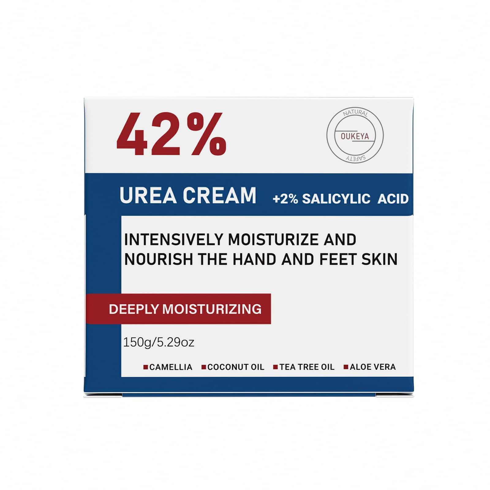 OUKEYA Urea Creme 42% mit 2% Salicylsäure, Fusscreme Feuchtigkeit & Reparatur für Trockene, Füsse, Fersen, Knie, Urea Handcreme für Hände, Hornhautentferner, Entfernt Hühneraugen, Tote Haut, 4 x150 g