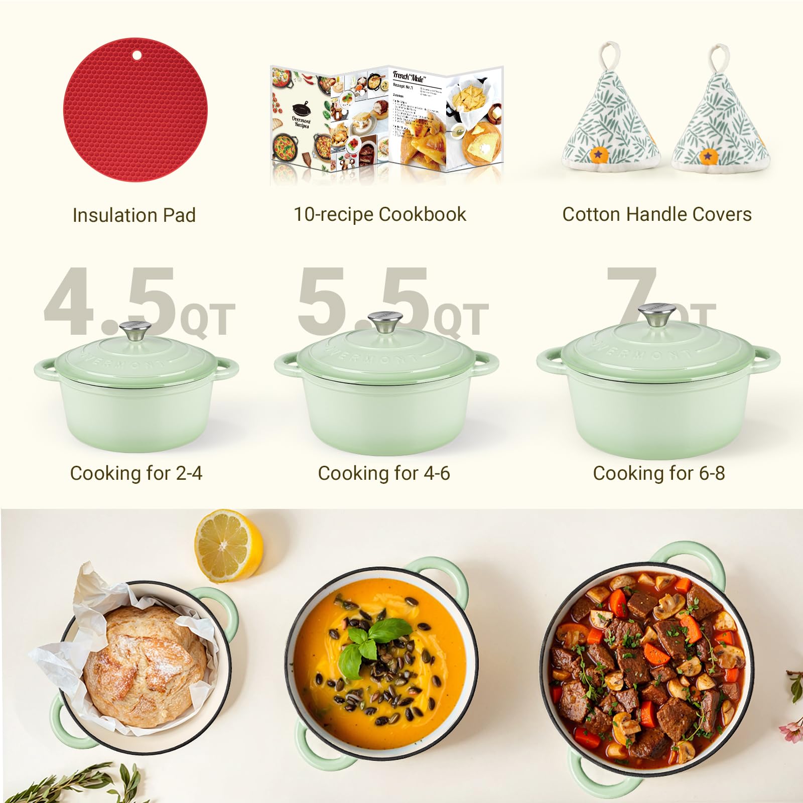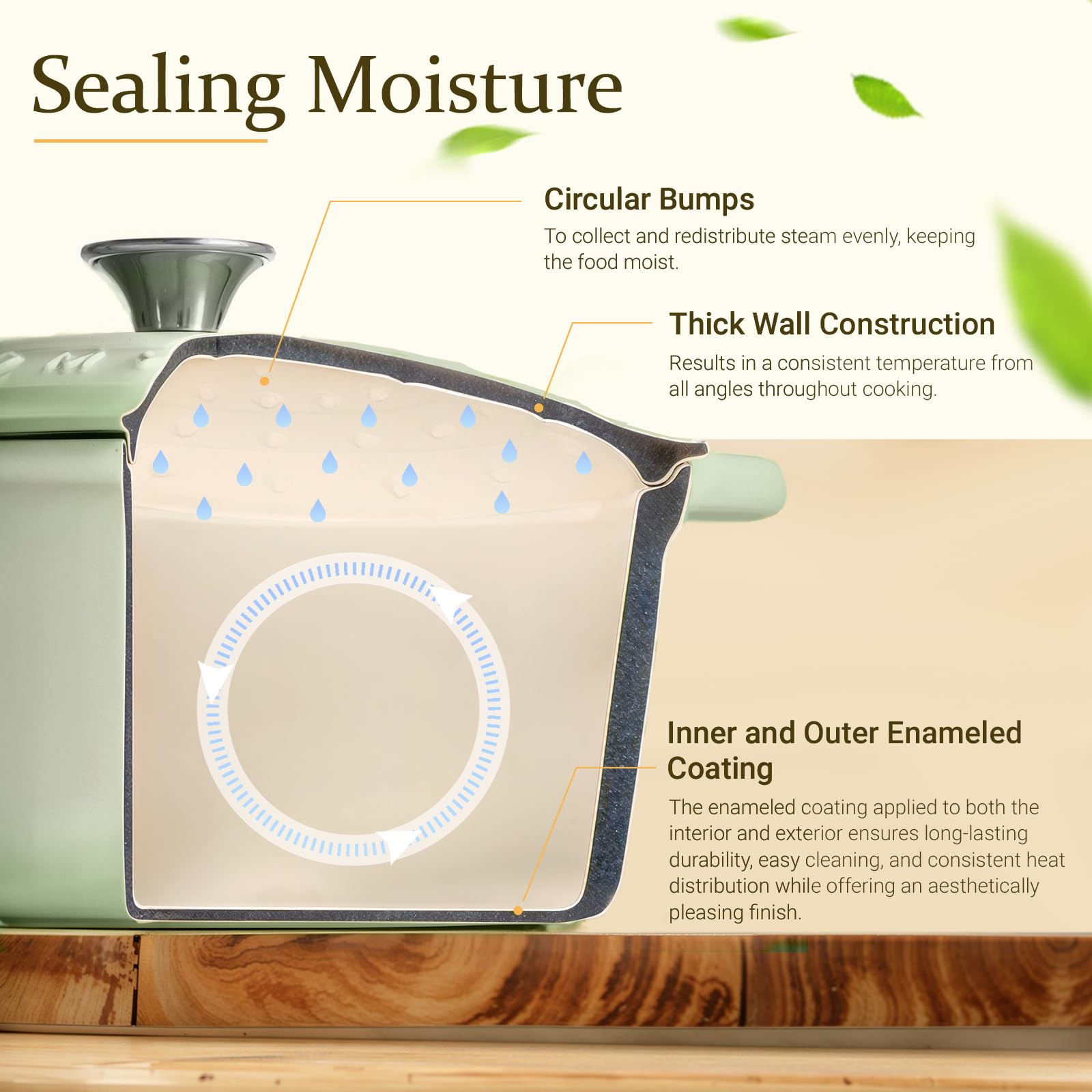 Overmont Bräter Emaille Gusseisen Topf - Schmortopf 26cm backofengeeignet - mit Deckel und Kochbuch - für Küche Backen Schmoren Braten