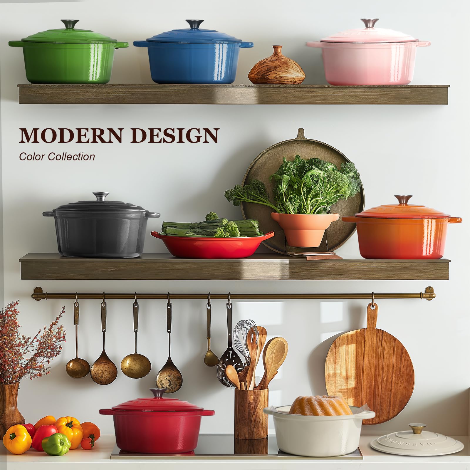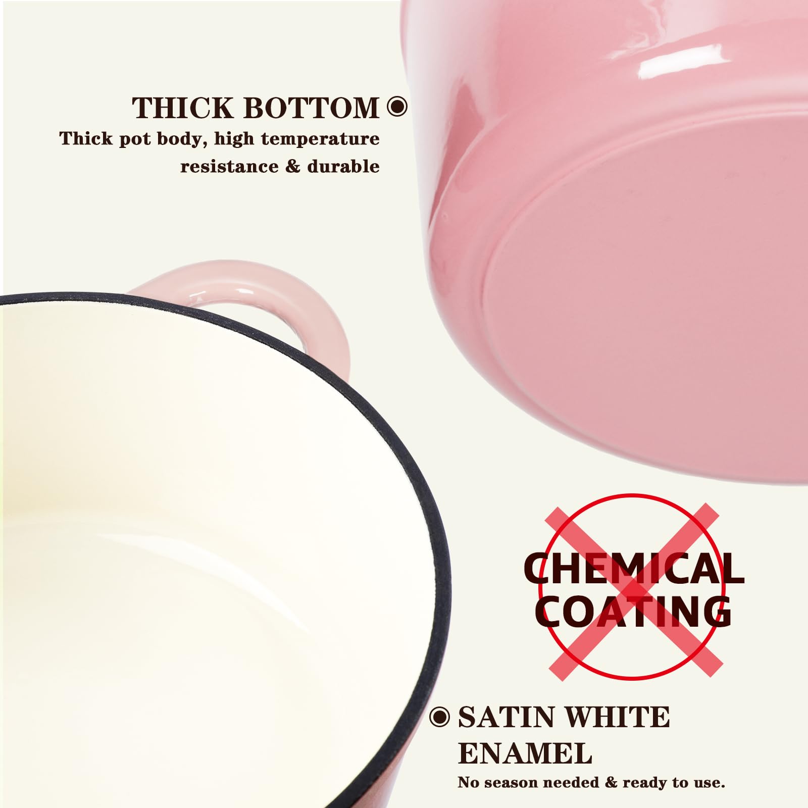 Overmont Bräter emaille Gusseisen Topf - Schmortopf 26cm backofengeeignet - mit Deckel und Kochbuch - für Küche Backen Schmoren Braten Rosa