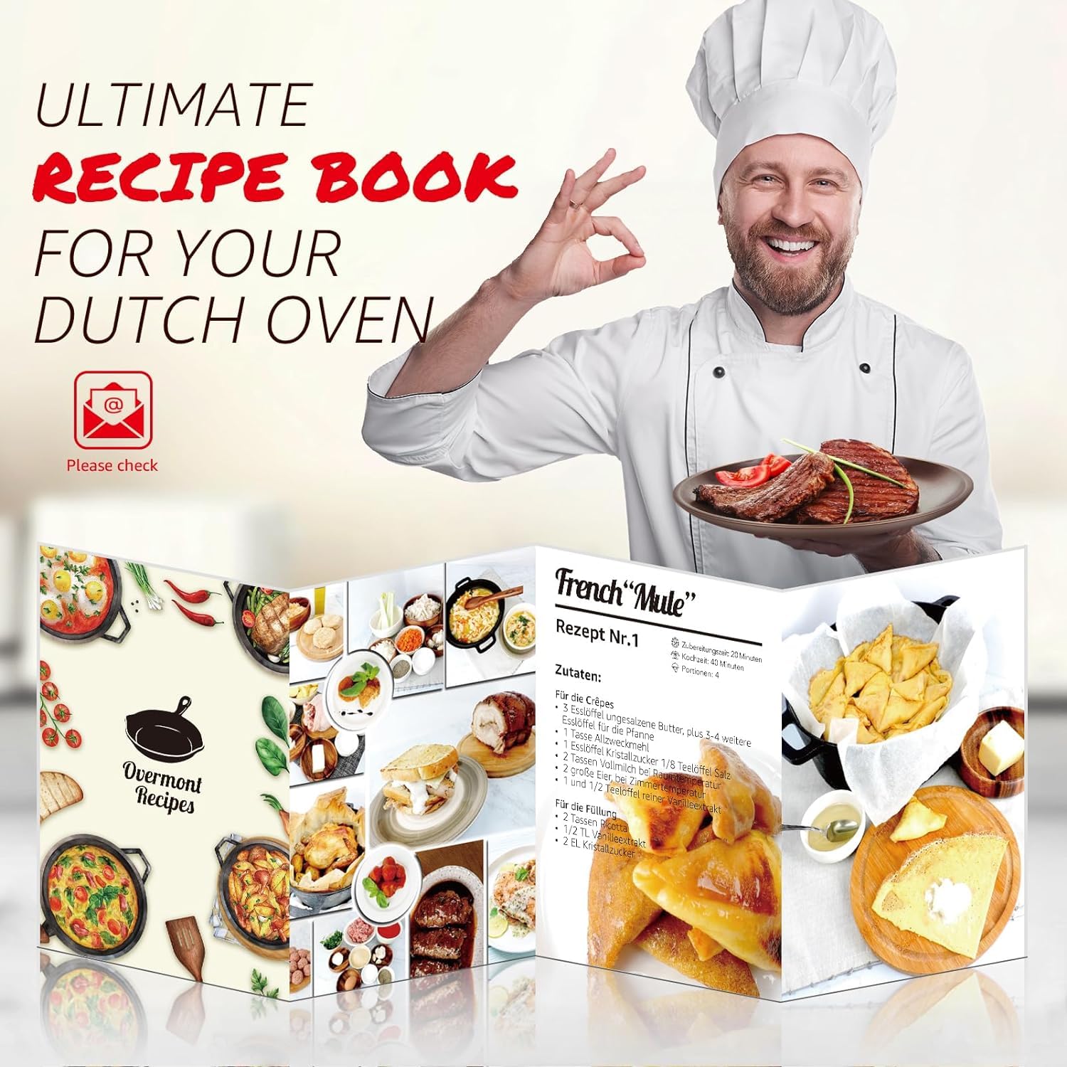 Overmont Kasserollen Bräter Ø 26 cm Schmortopf Emaille Gusseisen mit Deckel Kochbuch für Küche Backen Schmoren Braten Eintöpfen