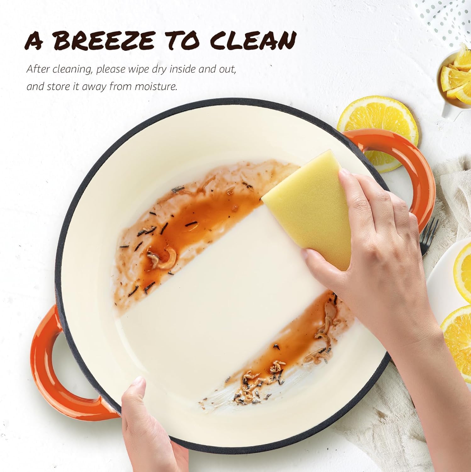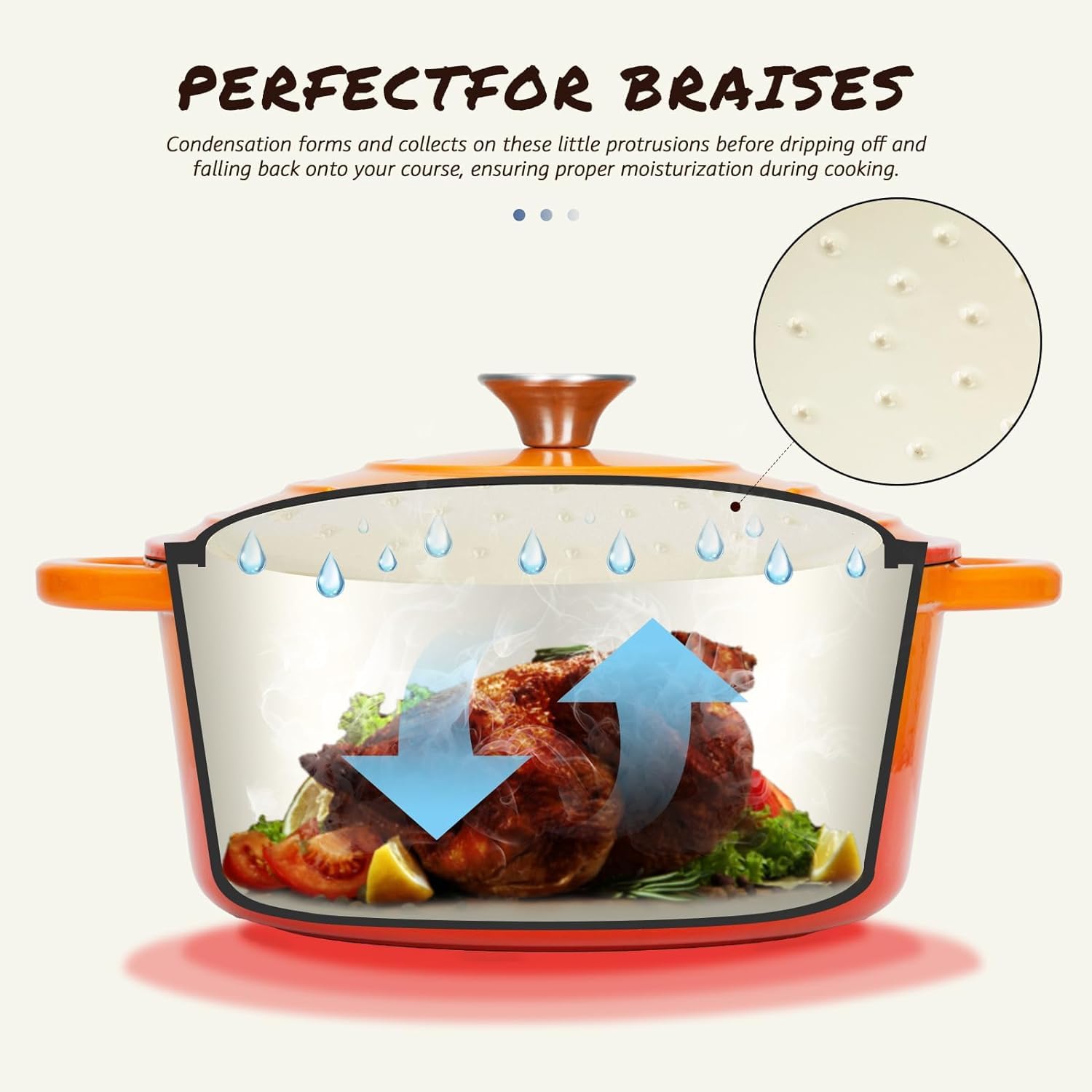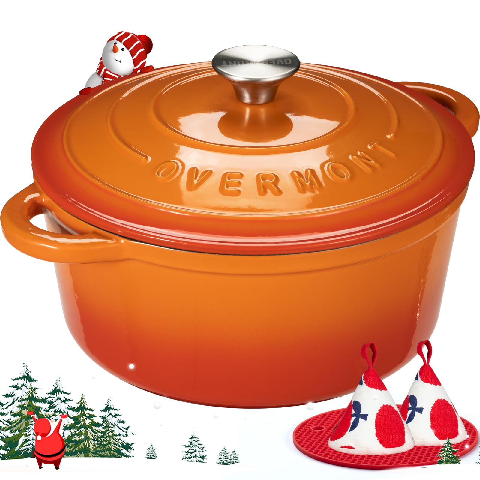 Overmont Schmortopf Gusseisen Topf 26cm - Emaille Bräter mit Deckel backofengeeignet - mit Kochbuch - für Küche Backen Schmoren Braten Orange