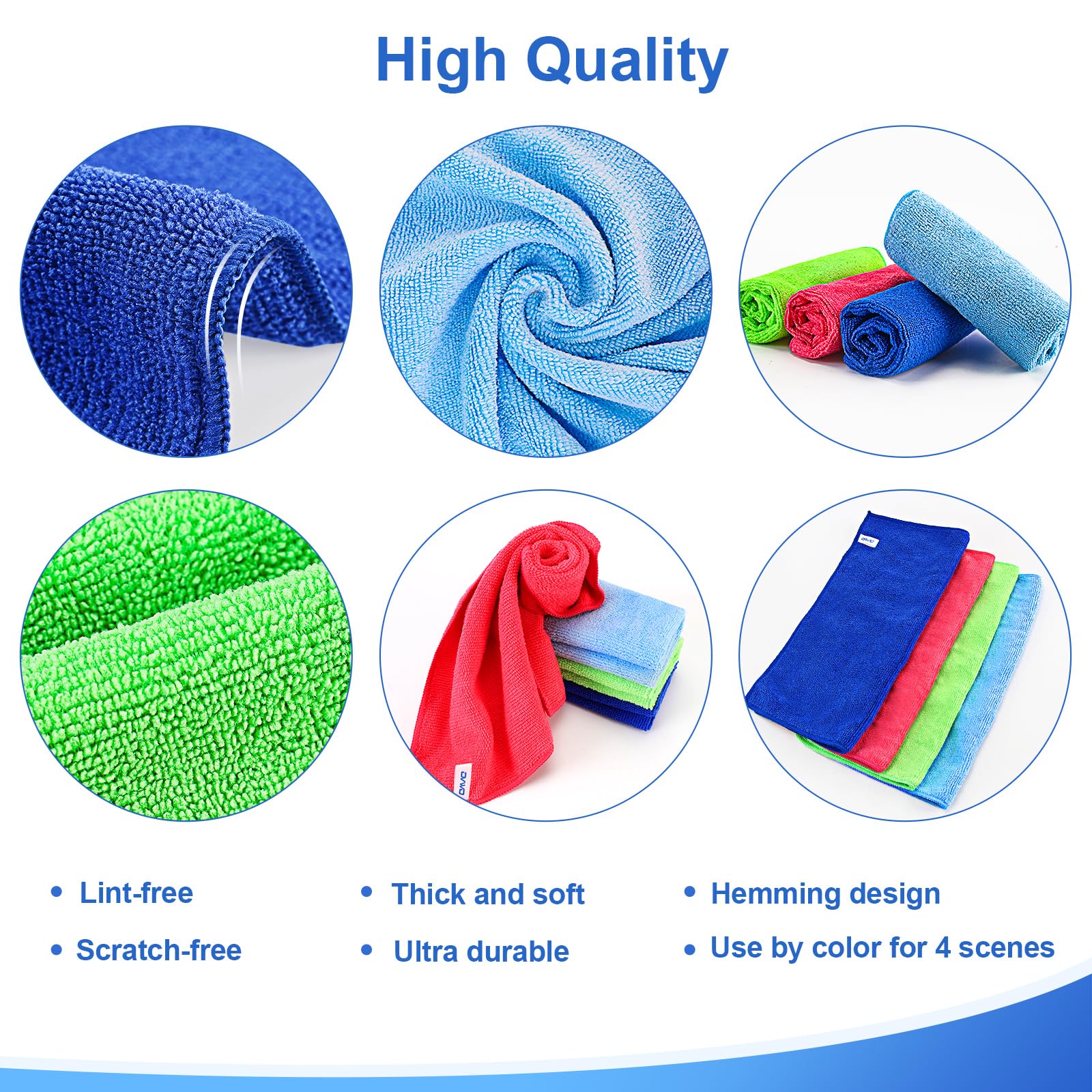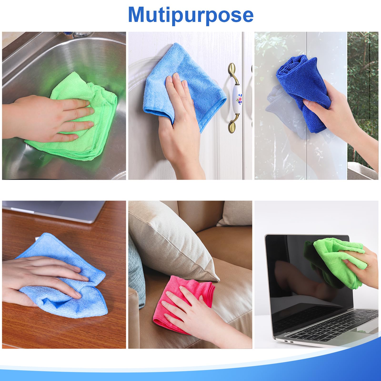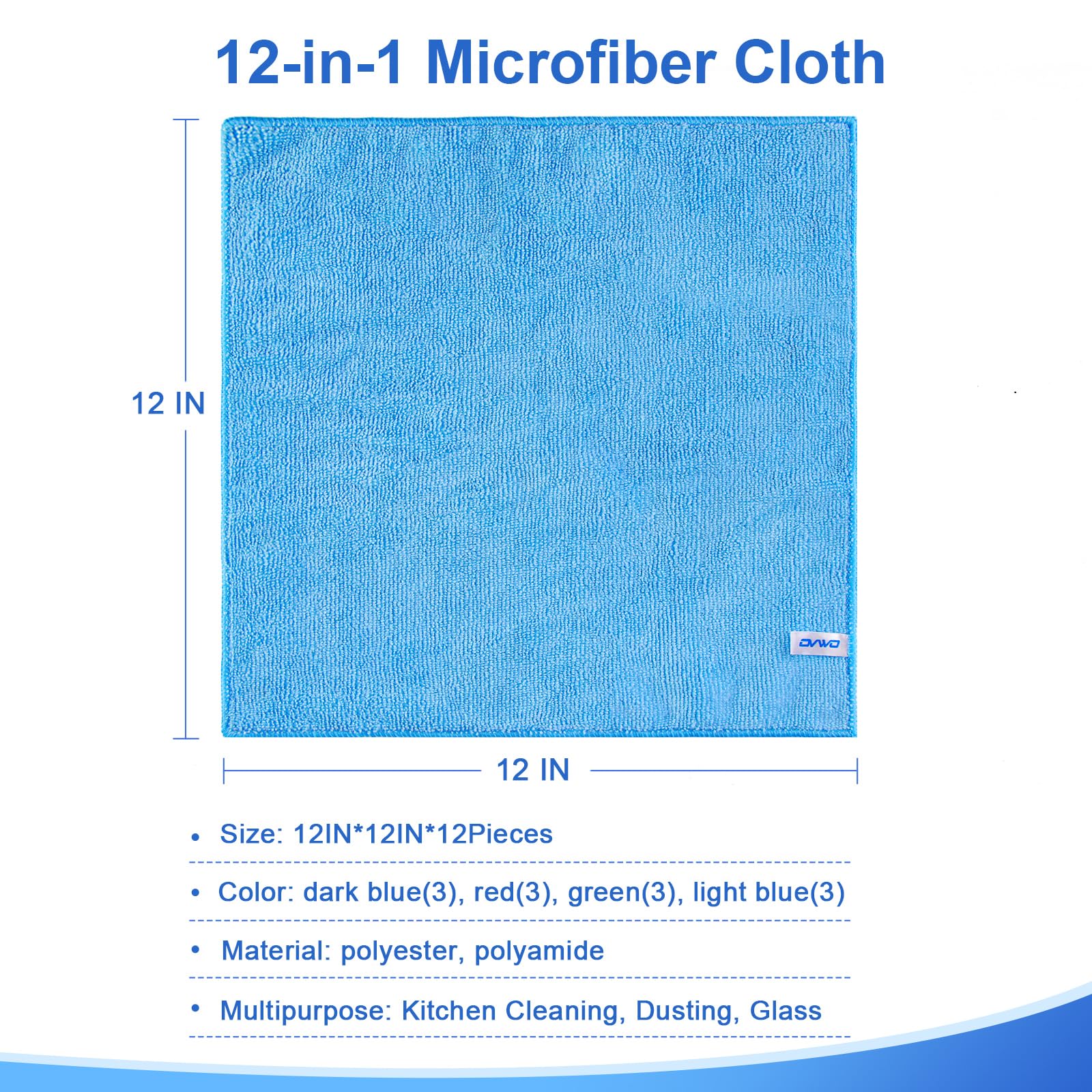 ovwo 12 Stück Hohe Qualität Mikrofasertücher - Sehr Saugfähig, Fusselfrei, Scratch Frei, Wiederverwendbaren Putzlappen - für Küchentücher, Geschirrtücher, Staub Lappen, Fensterputztücher