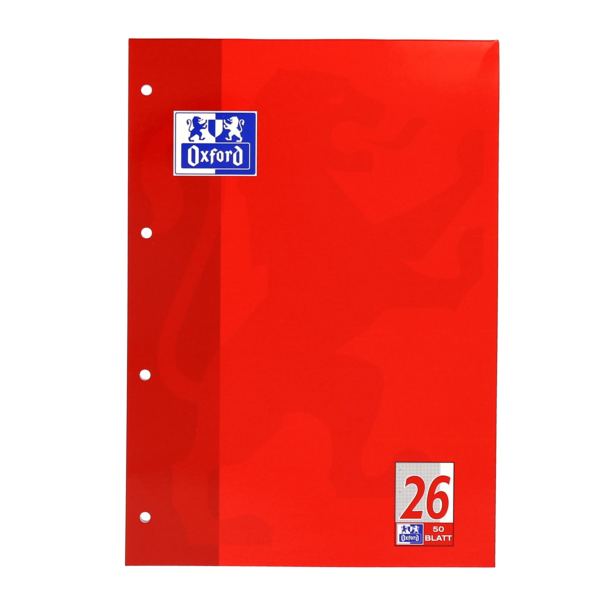 Oxford Schule Schulblock A4 kariert mit Rand, Lineatur 26, 50 Blatt, kopfgeleimt, 5 Stück