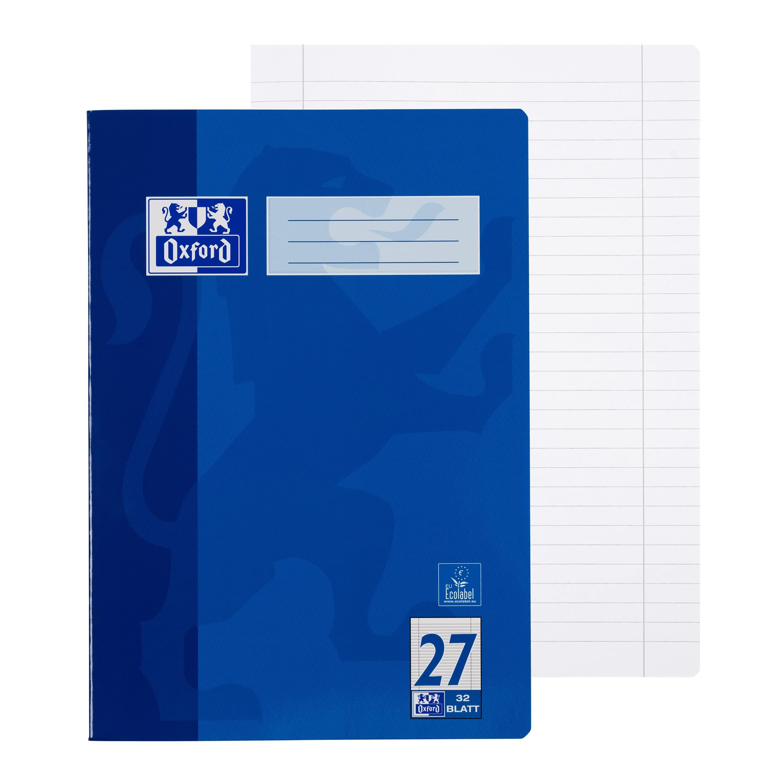 Mit dem ersten Schulheft beginnt der Ernst des Lebens.Die ersten geschriebenen Wörter und Texte sind etwas ganz besonderes für jeden Schüler. Für den optimalen Start in die Schullaufbahn bietet Oxford ein umfangreiches Sortiment: Von der Grundschule bis zur Oberstufe, bei Oxford gibt es alle gängigen Lineaturen in vielen verschiedenen Farben. Hausaufgabenhefte, Oktavhefte und Notenhefte ergänzen das Sortiment.Oxford Optik PaperDas hochwertige Papier (Optik Paper) hat eine seidenglatte Oberfläche, die für ein optimales Schriftbild sorgt und damit das Schreiben für die Schüler erleichtert. Das Papier ist bewusst etwas dicker und stabiler (90 g/m²) als Standardpapier (70 bis 80 g/m²), damit beide Seiten des Papiers beschrieben werden können, ohne dass die Tinte auf der Rückseite durchschlägt.ProduktdetailsStarker Umschlag: abwischbar und mit Glanz-Look Beschreibbare Etiketten Lineatur 27 - liniert mit DoppelrandInhalt: 16 Blatt Format: DIN A4Aus 90 g/m² Optik PaperMit abgerundeten Ecken - verhindern das Entstehen von EselsohrenVE: Packung mit 10 StückDas Heft trägt das EU Ecolabel & ist damit gut für die Umwelt