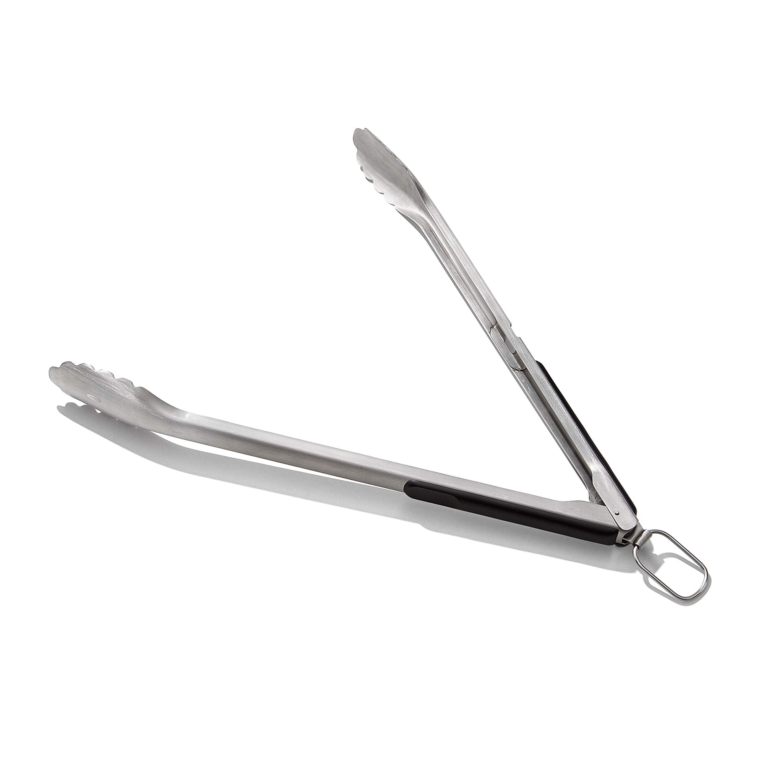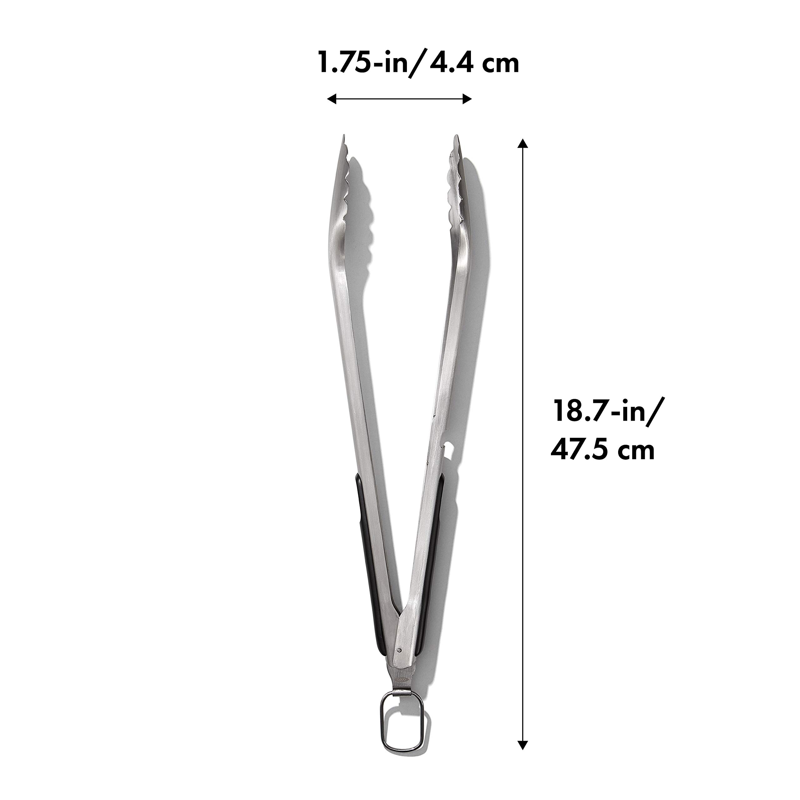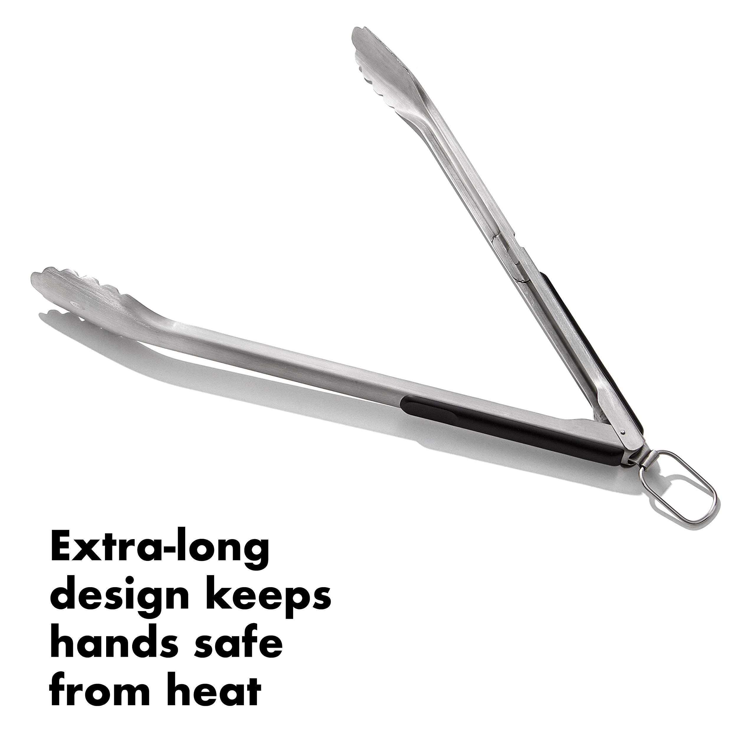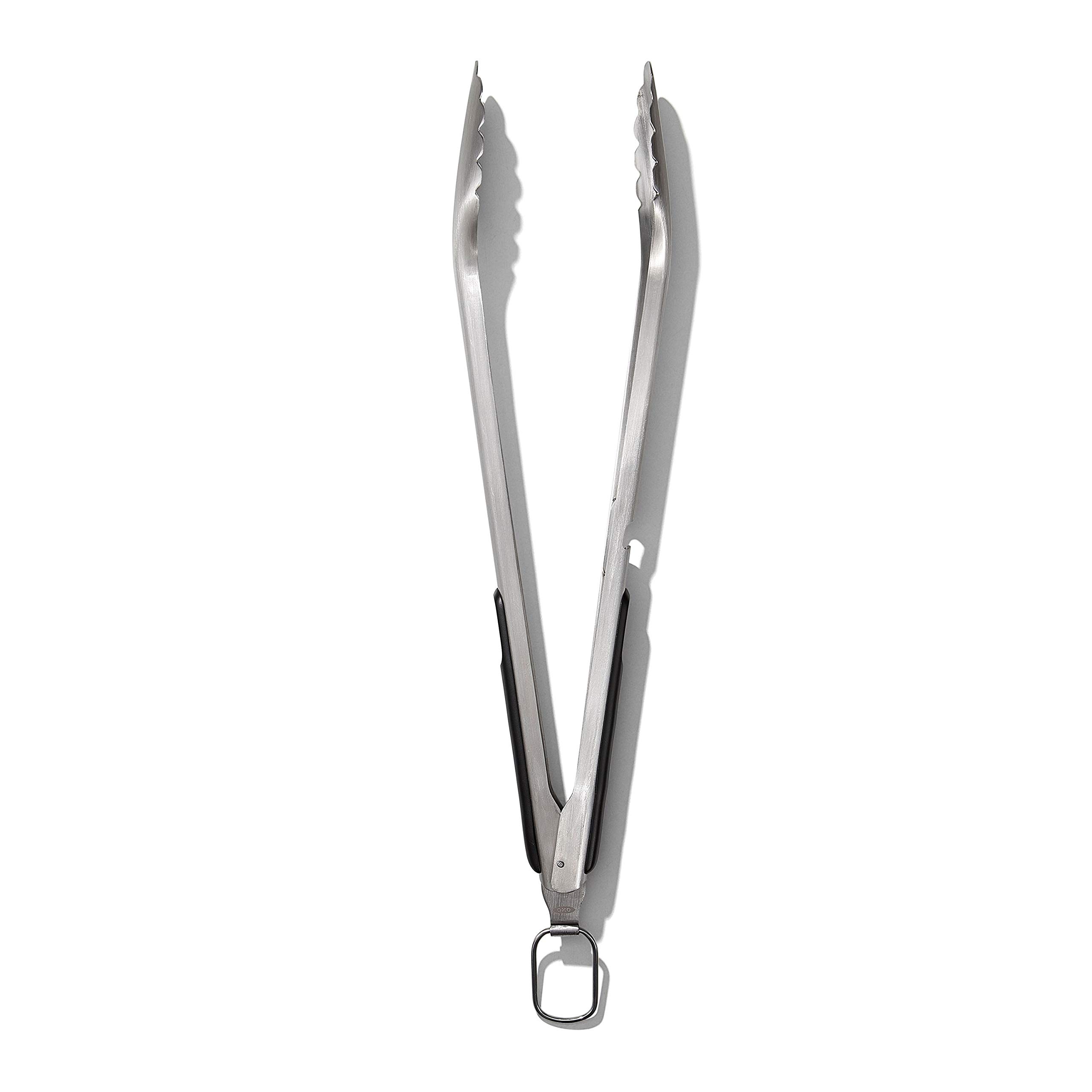 OXO Good Grips Lange Grillzange aus Edelstahl mit integriertem Flaschenöffner, 47,5 cm – für Würstchen, Gemüse und mehr