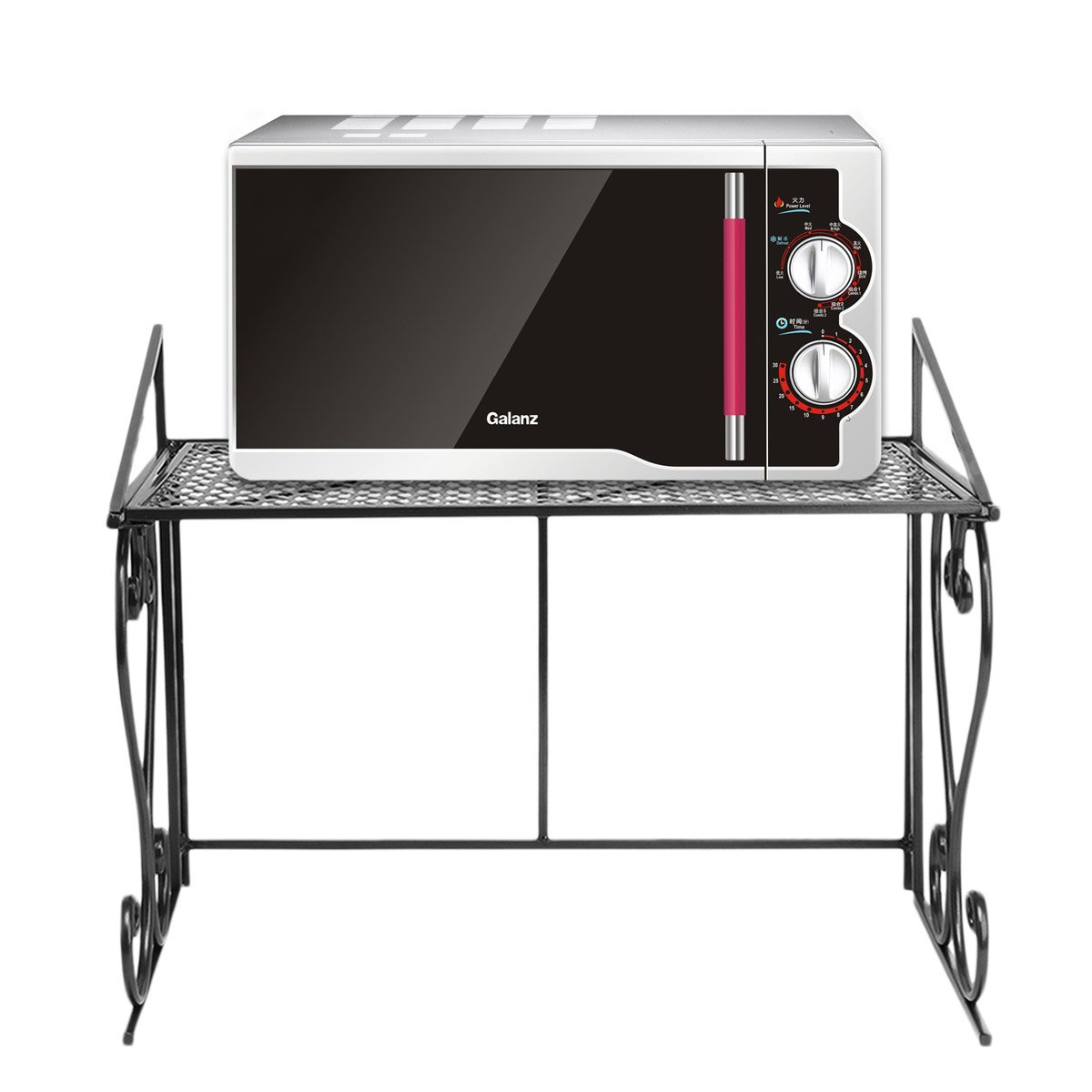 P&B Stabiles Mikrowellen-Regal, Metall, Mikrowellen-Regal, einlagig, Küchenaufbewahrung, Organizer, Arbeitsplatte, platzsparend, für kleine Küche, Badezimmer (Schwarz)
