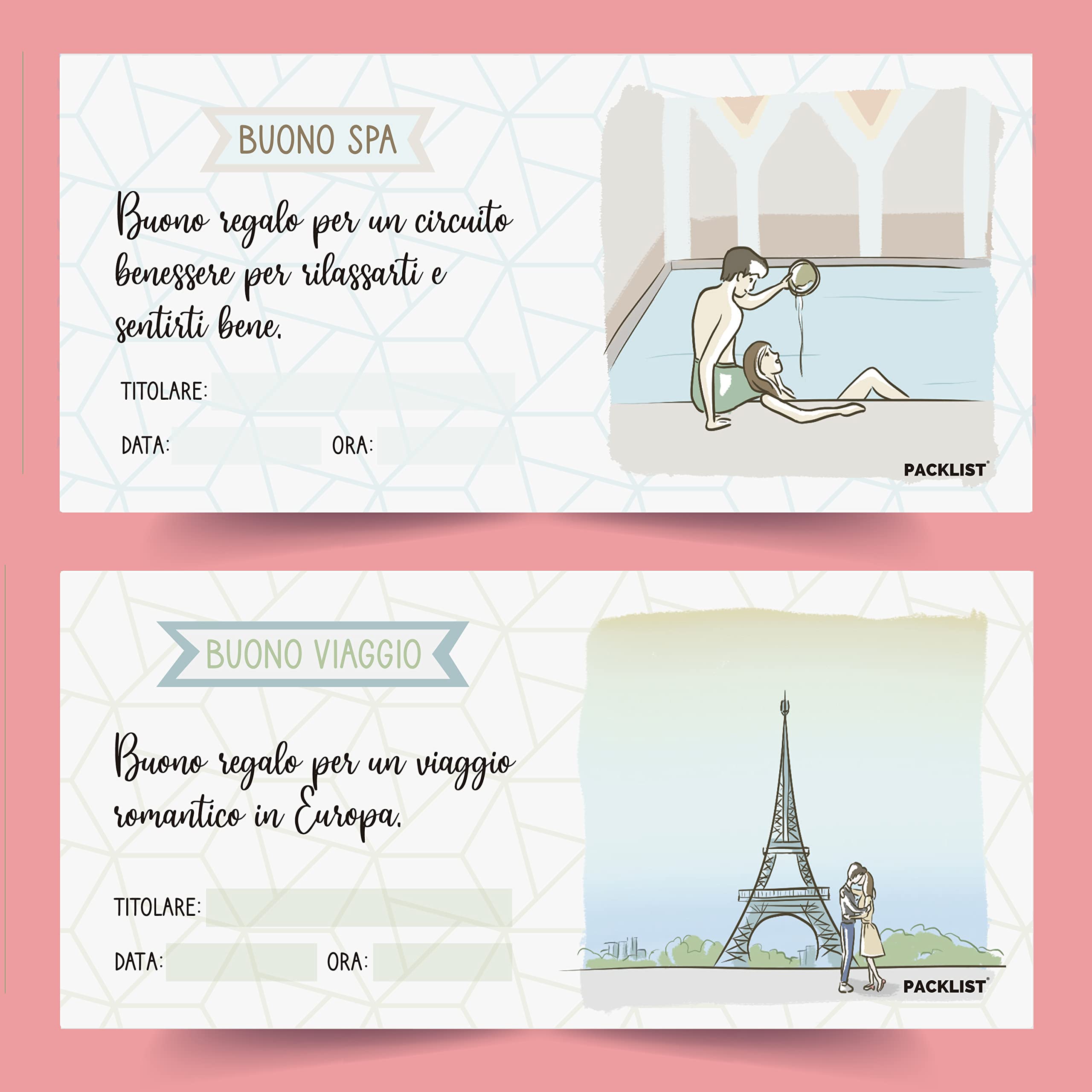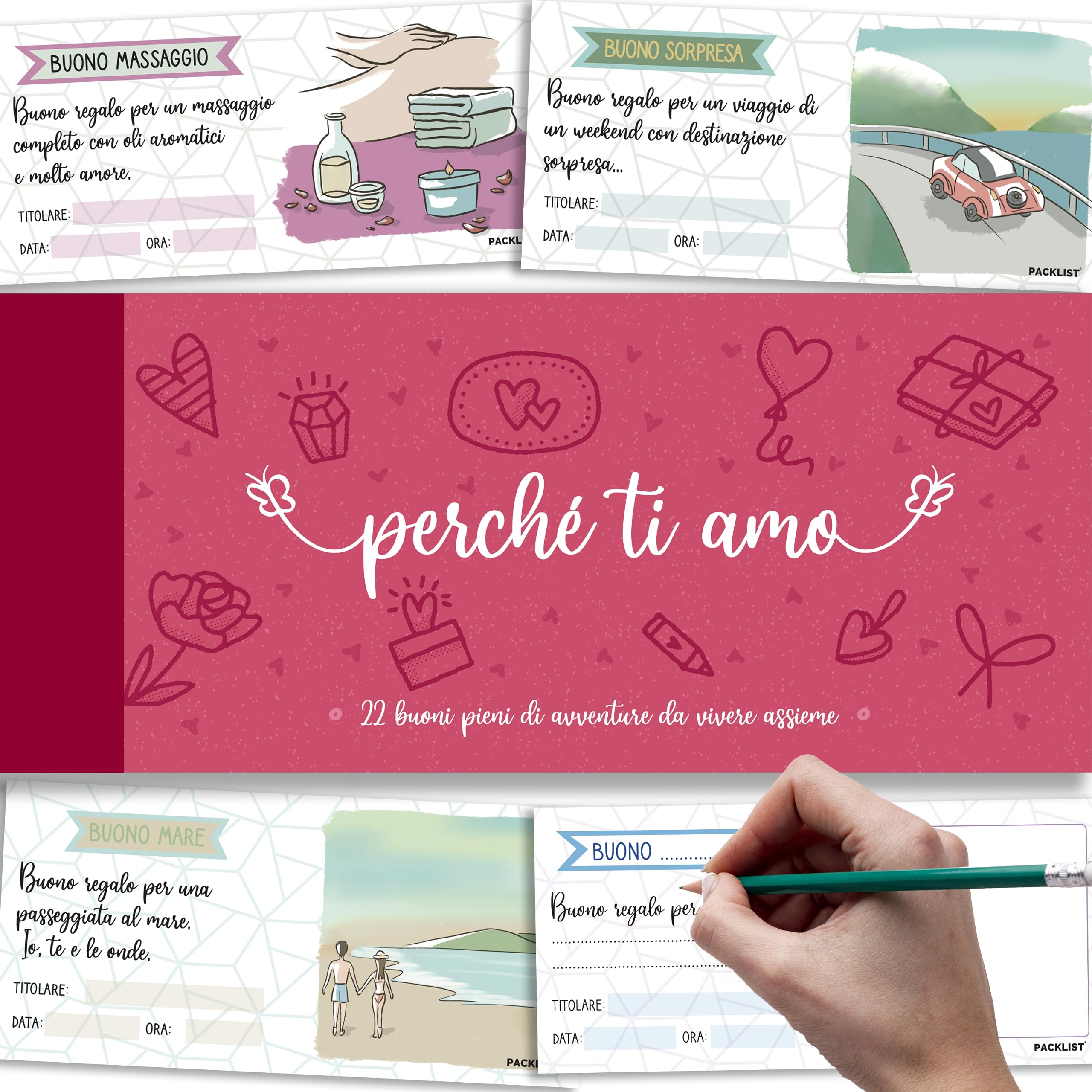 PACKLIST® Voucher Coppia - 22 Buoni Romantici & Avventura A4. Libretto Esperienze: 16 Piani Pronti + 6 Vuoti Personalizzabili. Regalo Indimenticabile per Innamorati e Coppie.