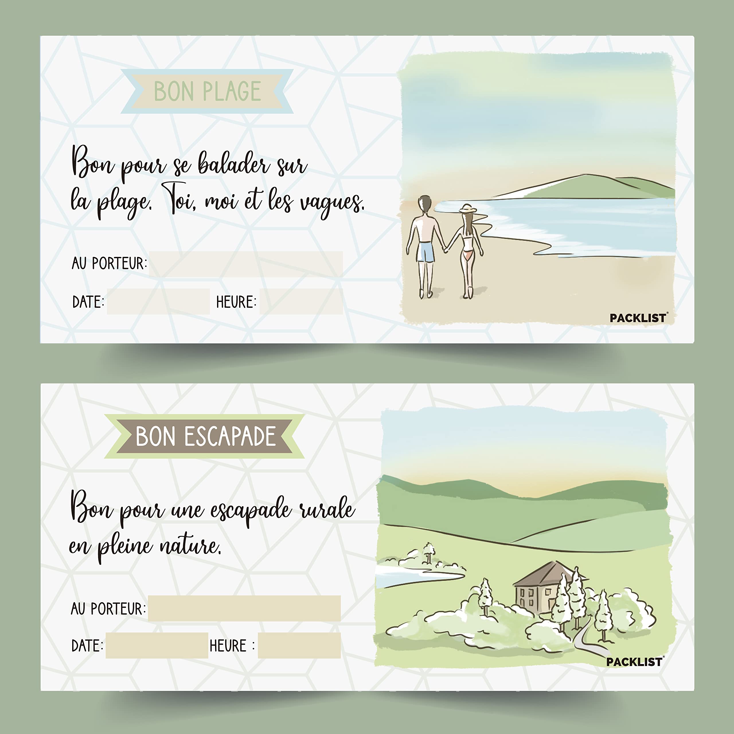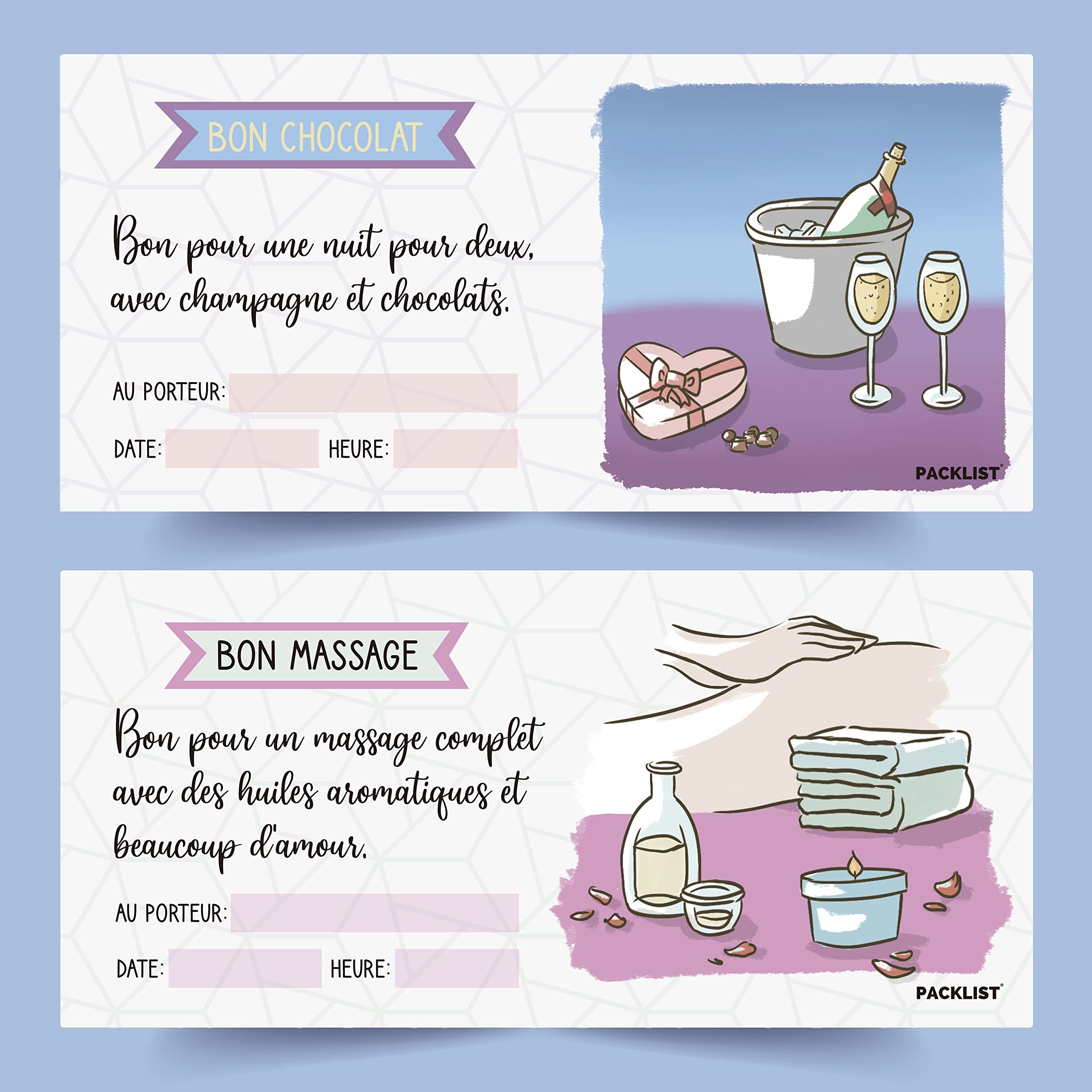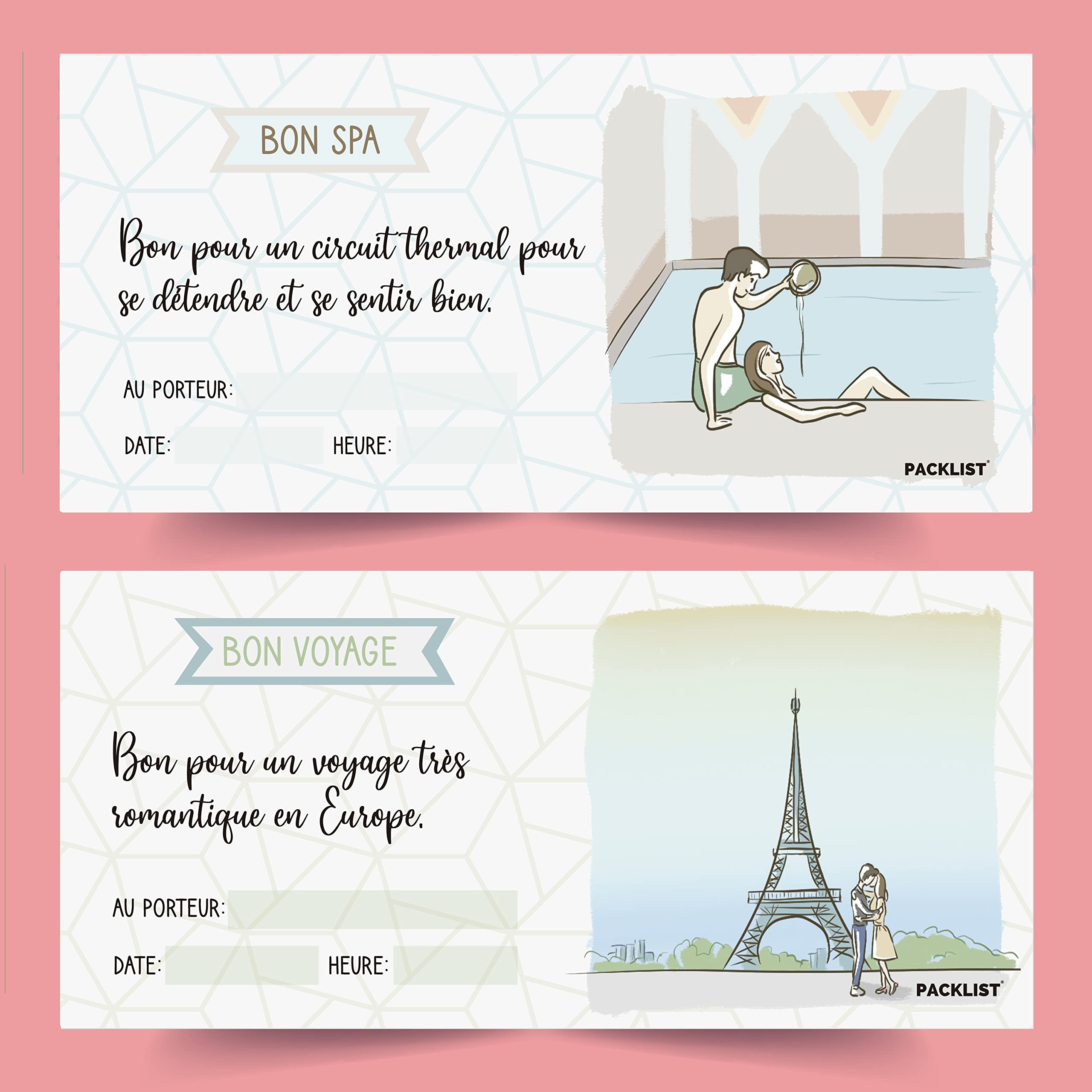 PACKLIST Carnet de Chèques-cadeaux pour les Couples, 22 Chèques Romantiques Pleins D'aventures à Vivre Ensemble - 16 plans + 6 Chèques-cadeaux Personnalisables à Remplir Comme Vous le Souhaitez.