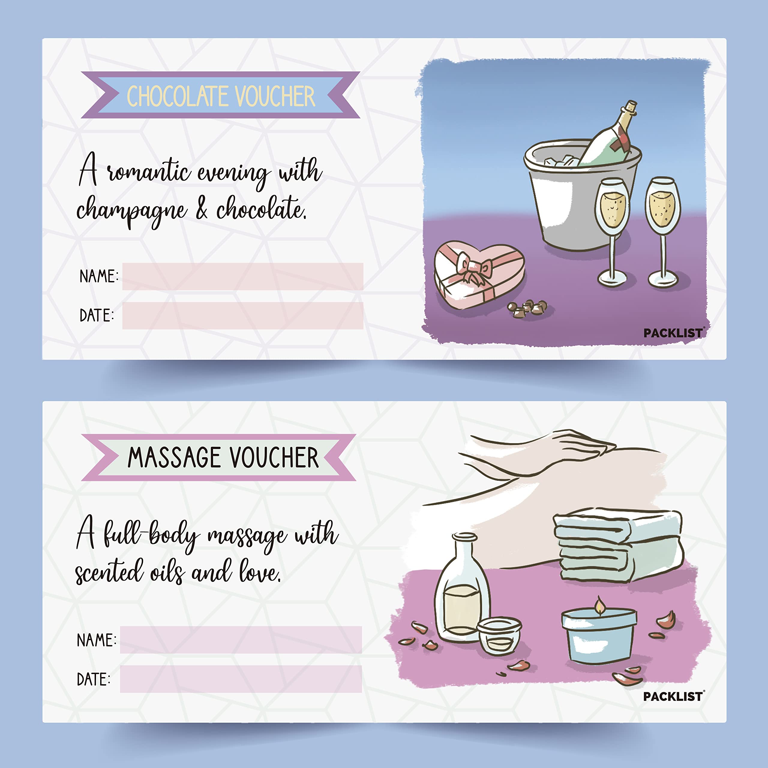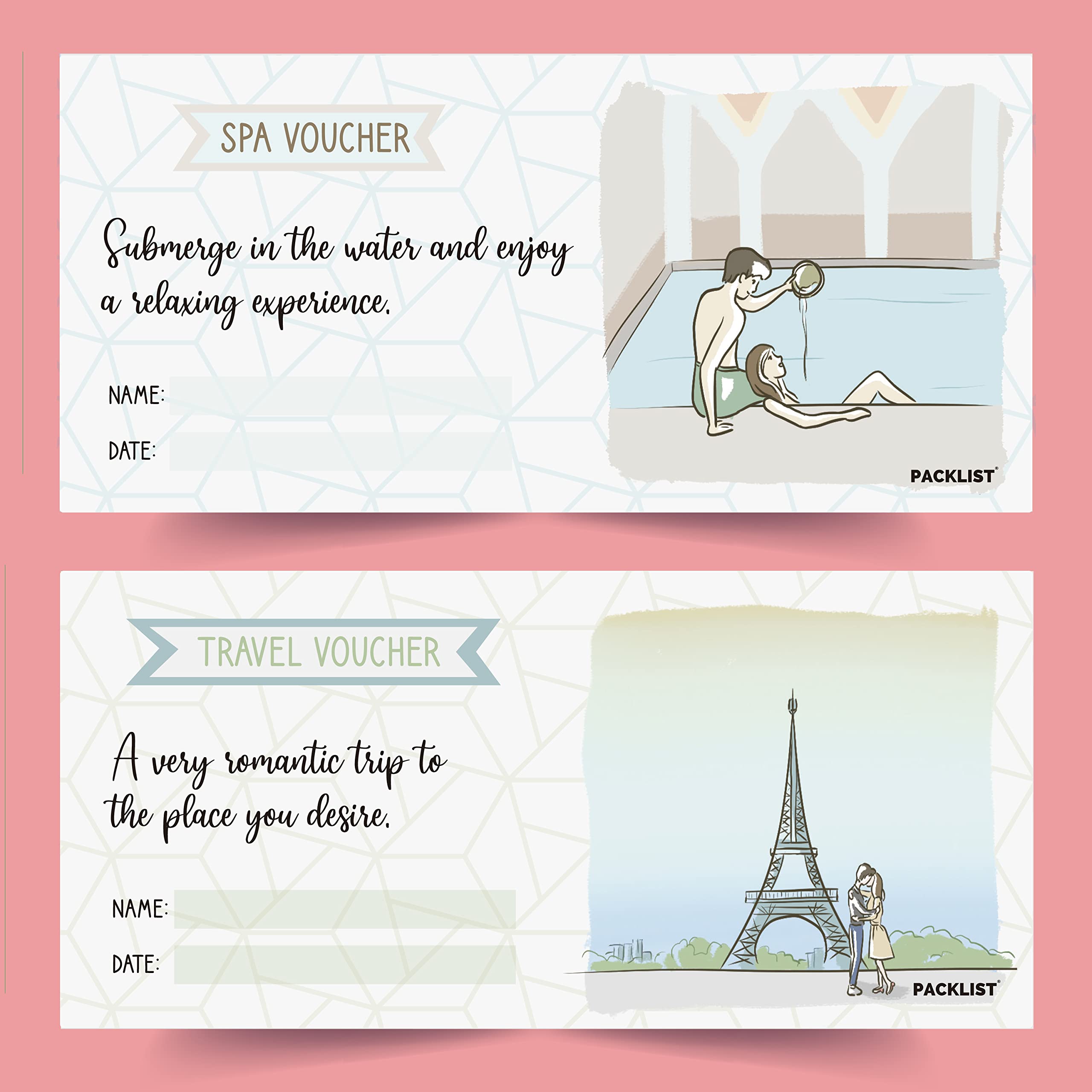 PACKLIST® Couple's Voucher Book, Date Night Ideas with 22 Gift Vouchers for Your Partner - Romantic Adventures, 6 Blank Customizable Gift Coupons - For Couples Who Love Life!