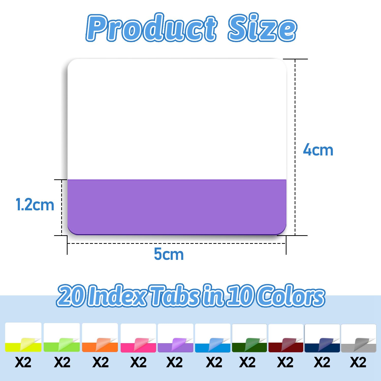 400 Stück Haftstreifen-Tabs 20 Sets 10 Farben Index Haftmarker Farbige Seitenmarkierungen Repositionierbare Bandfahnen für Bücher Binder und Aktenordner