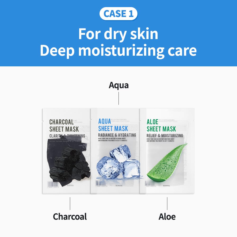 Eunyul Purity Gesichtstuchmasken Set – 8 Typen koreanische Tuchmasken fuer intensive Pflege (22 ml x 48 Stueck)