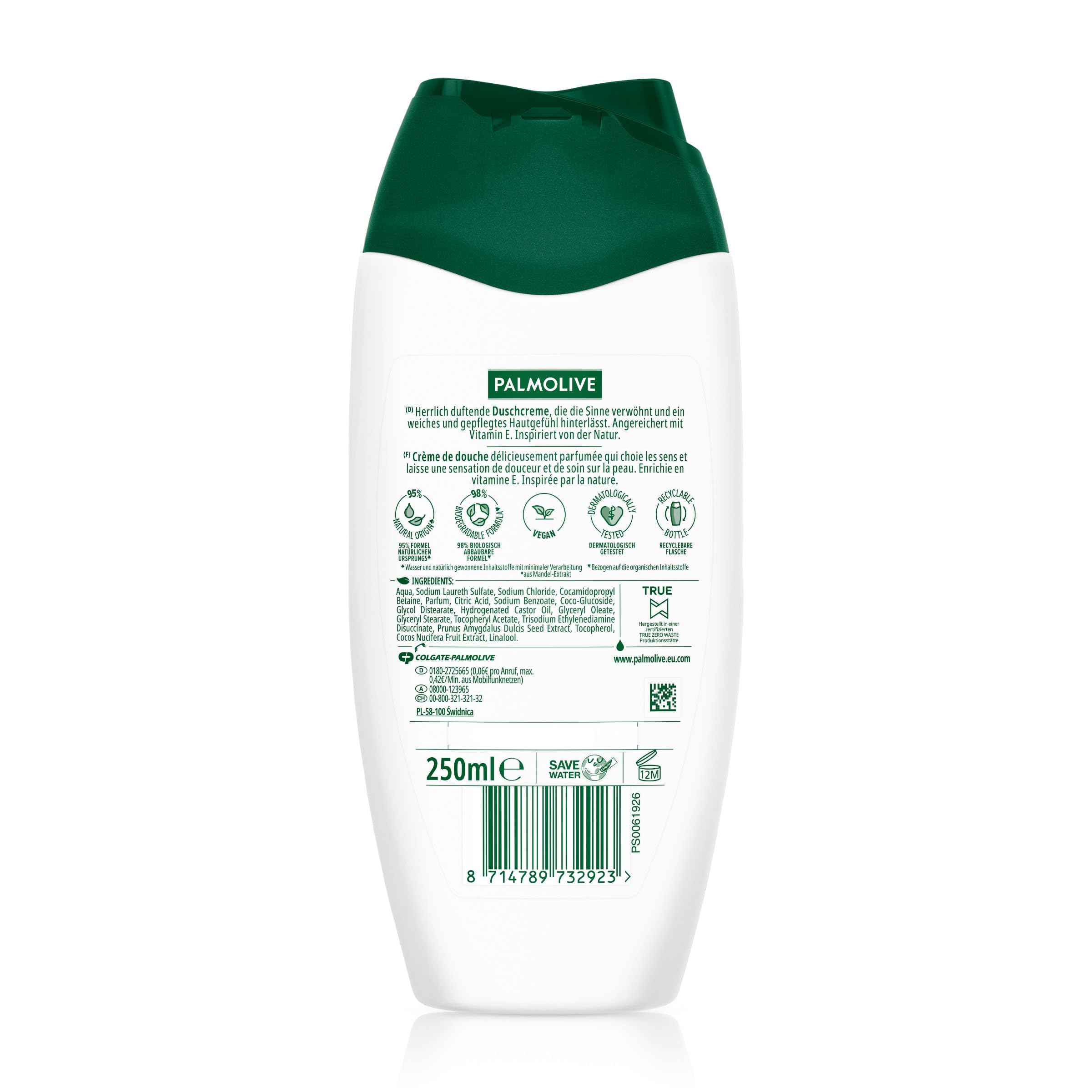 Dermatologisch getestet: Das Palmolive Naturals Duschgel wurde dermatologisch getestet und eignet sich somit für alle Hauttypen, auch für empfindliche Haut.