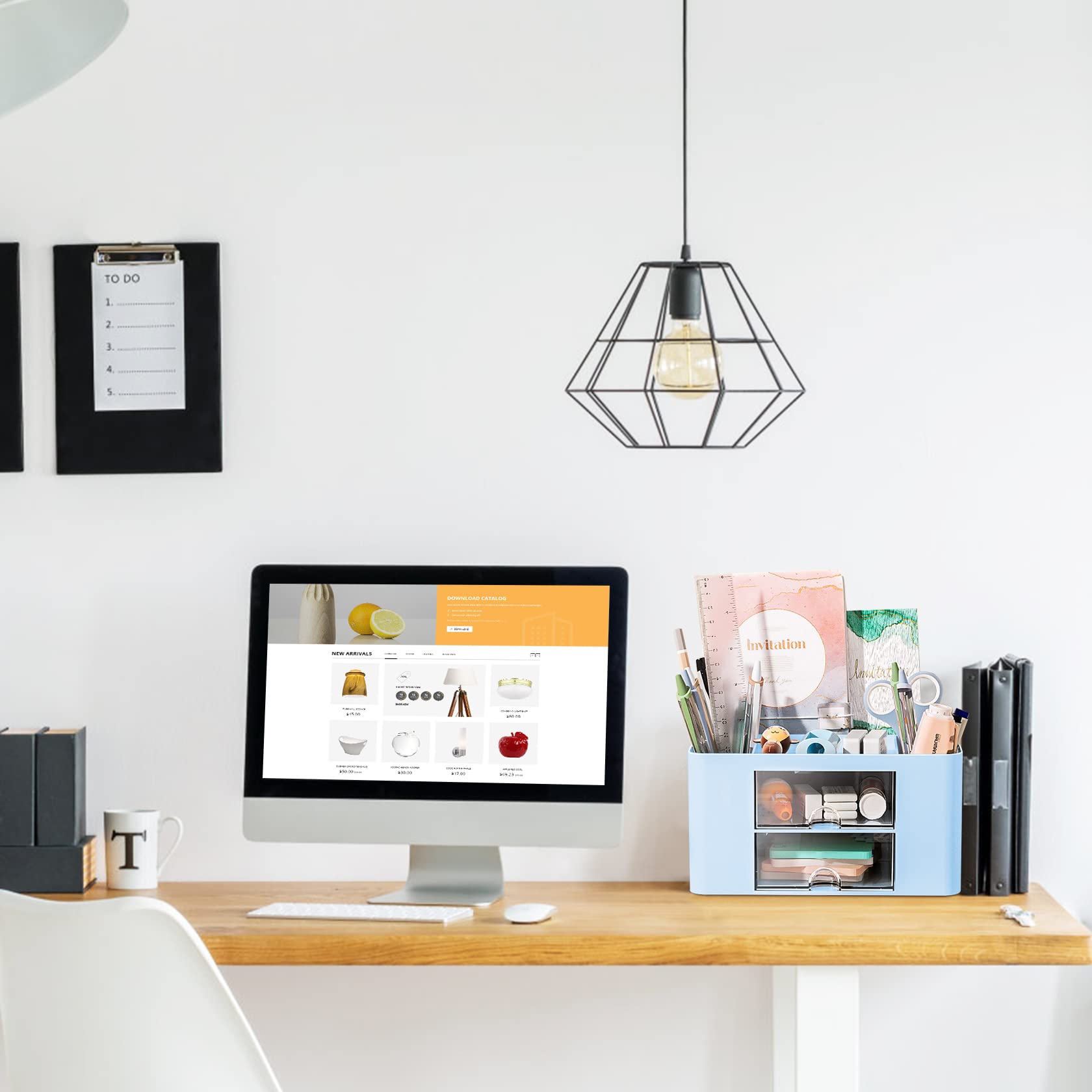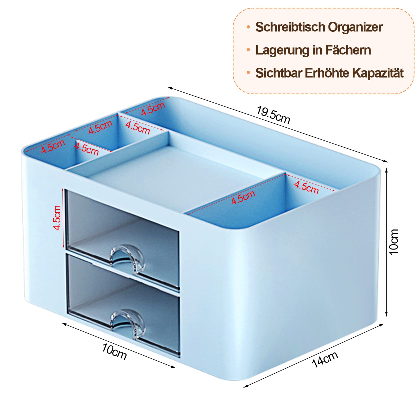 - Lagern mit grosser Kapazität: 5 Schubladen mit unterschiedlichen Grössen und 2 transparenten Schubladen. Geeignet für die Aufbewahrung aller Arten von Studienschreibmalzeiten, Bürovorräten und Kosmetika. Helfen Sie, Ihren Desktop -Platz zu maximieren.