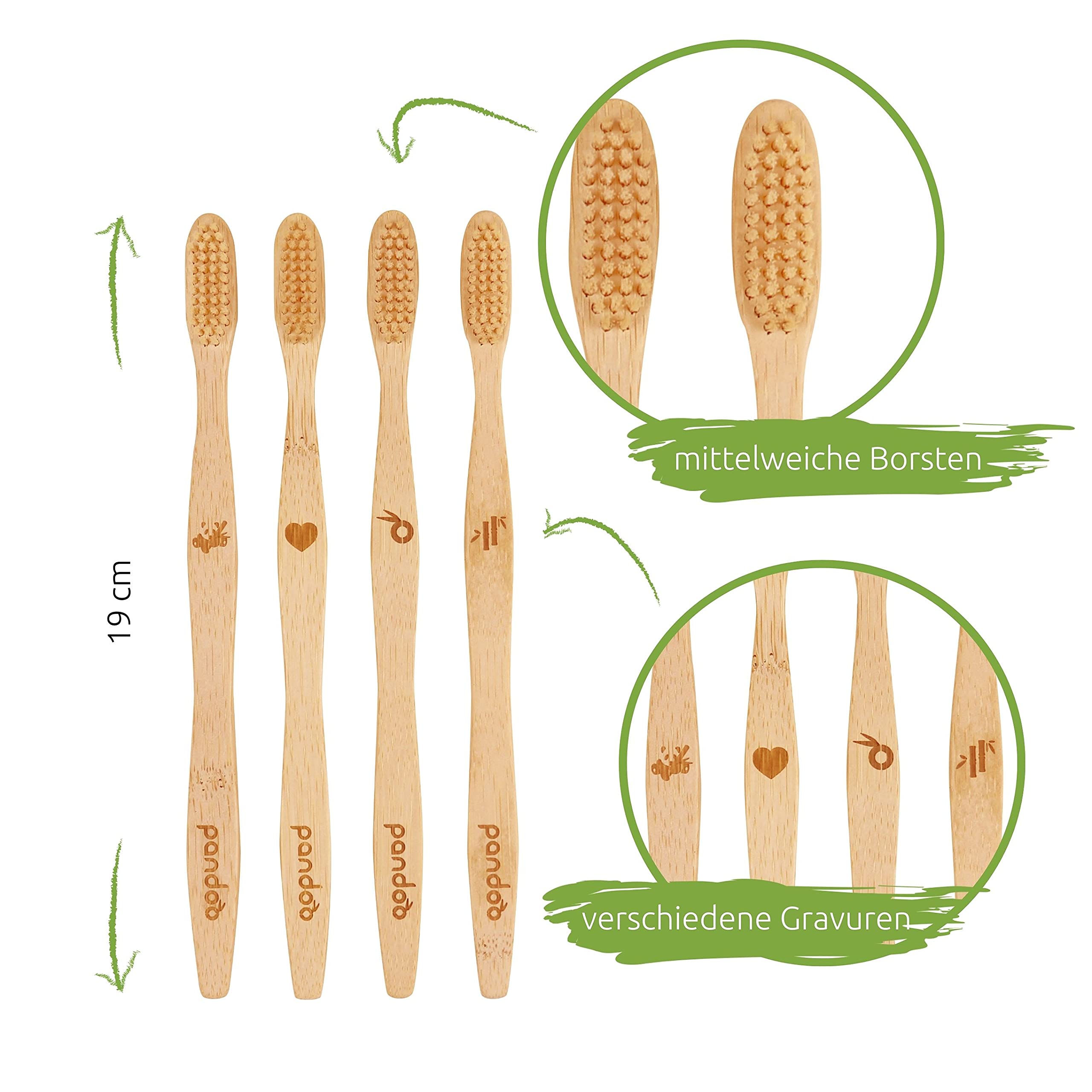 Die pandoo Bambus-Zahnbürsten sind ein umweltfreundlicher & effektiver Ersatz für Zahnbürsten aus nicht abbaubaren Material. Die Bürsten haben die perfekte Mischung aus weichen und dennoch robusten Borsten und sind daher ideal für einen sauberen Mund- & Rachenraum. Sie sind eine wahre Bereicherung für jedes Zuhause oder für das Reisen