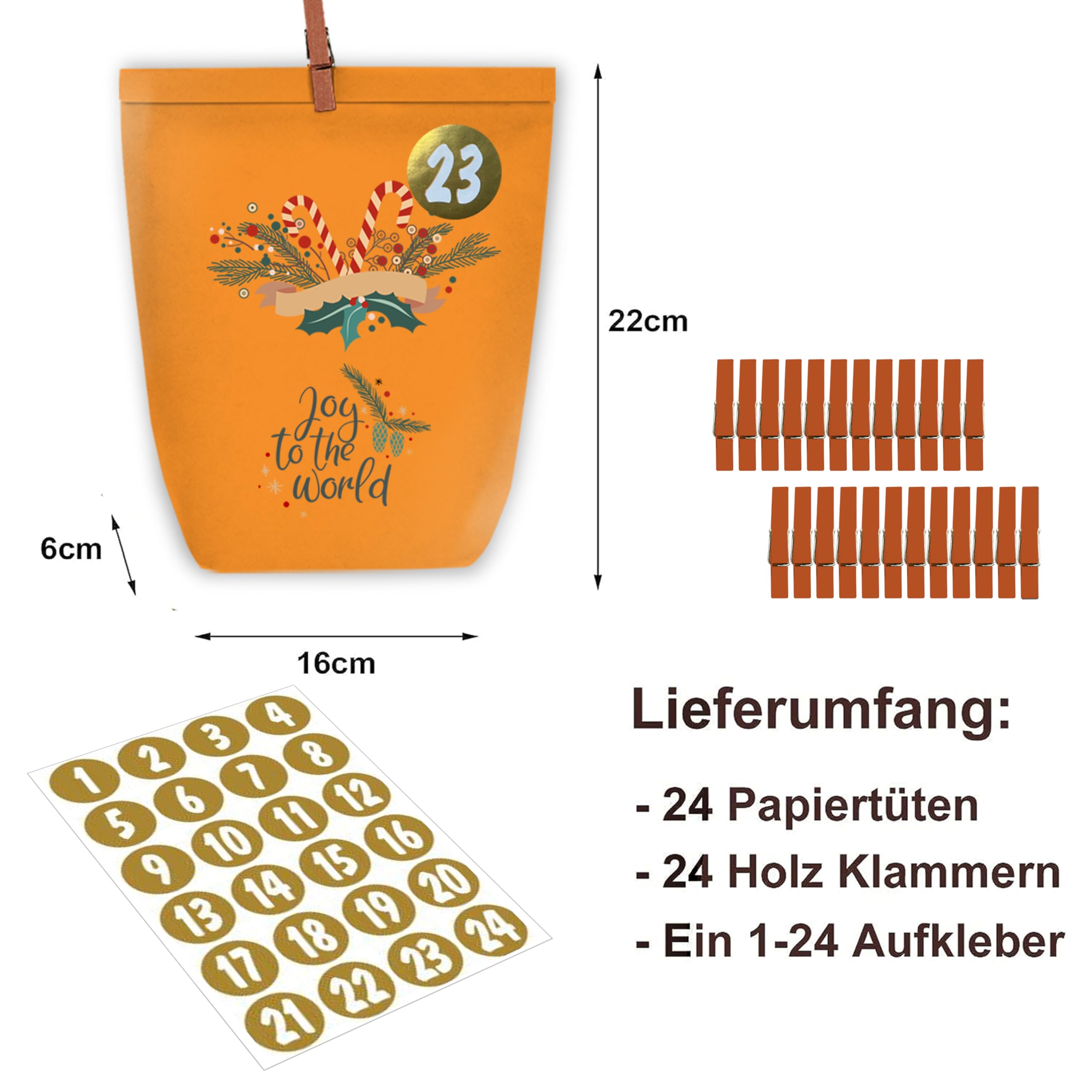 - 24 Papiertüten(16 x 6 x 22 cm)
