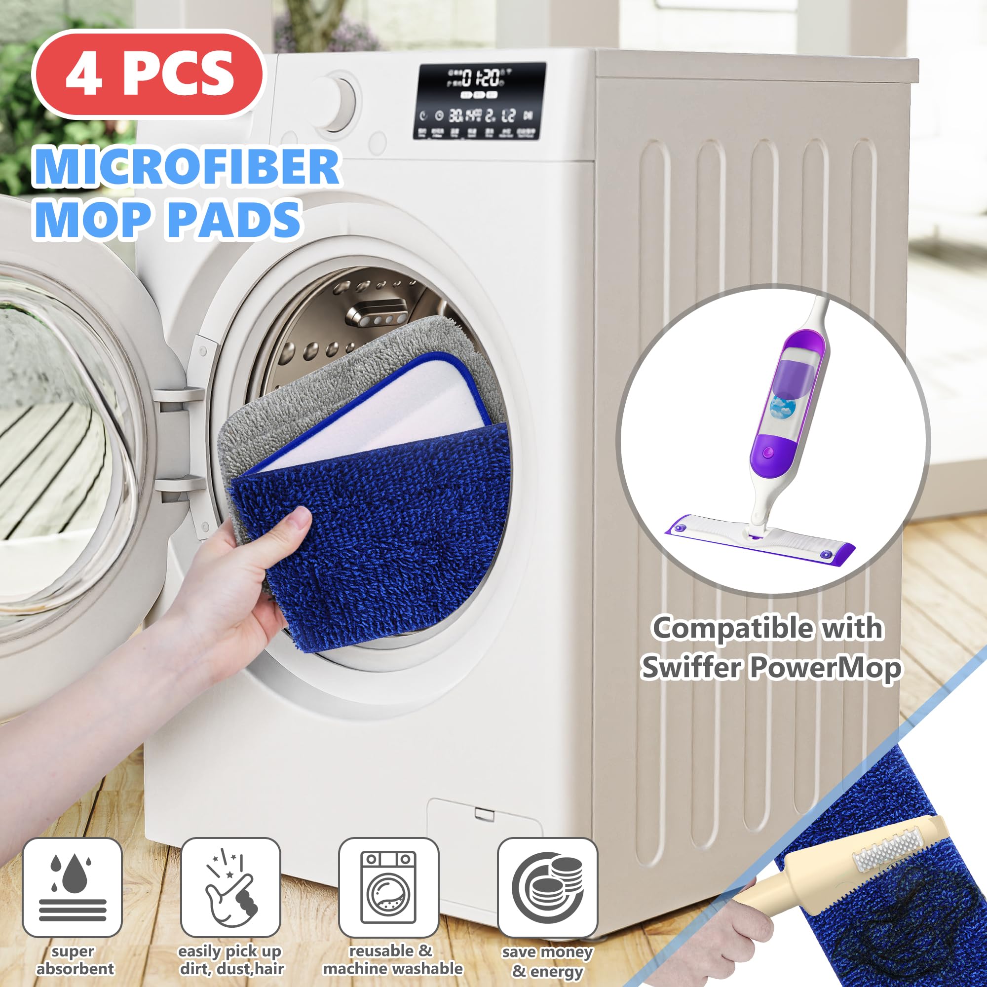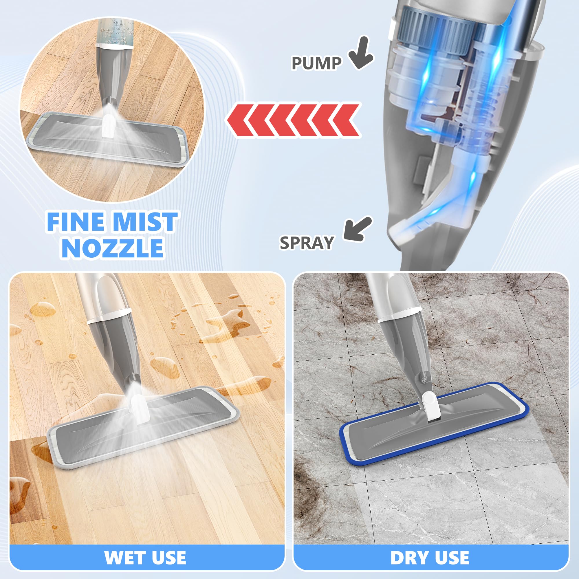 PAPCLEAN Sprühmopp für Bodenreinigung, Mikrofaser-Mop, Hartholzböden, Nassstaub, Flachreiniger mit 4 waschbaren Pads, 440 ml, nachfüllbare Flasche, Holz, Fliesen, Laminat, Vinyl, Küche, Grau