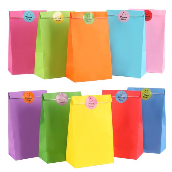 Papiertüten Bonbon Geschenktüten, 20 Stück Bunte Kraftpapier Goodies Geschenktüten mit 20 Stickern zum Verpacken von Geschenken, DIY, Hochzeit, Kindergeburtstag, Weihnachten Osterfeiern