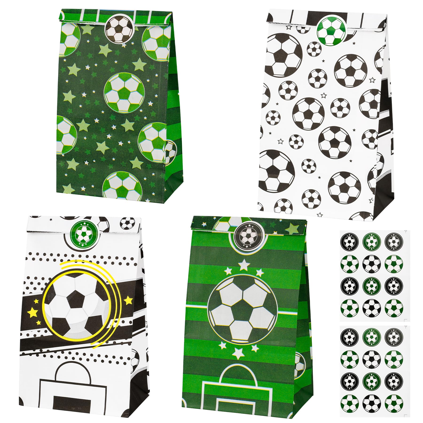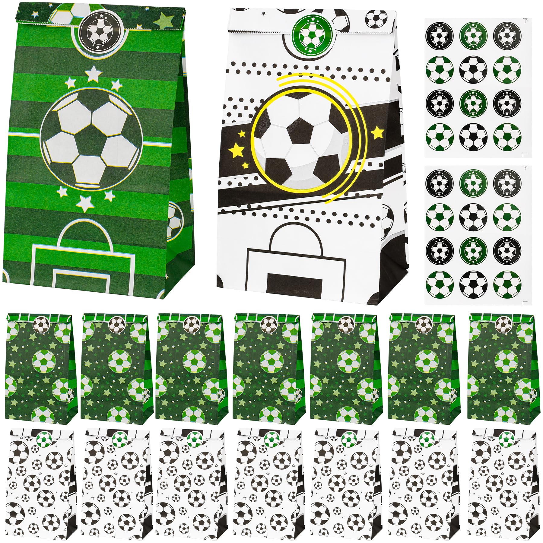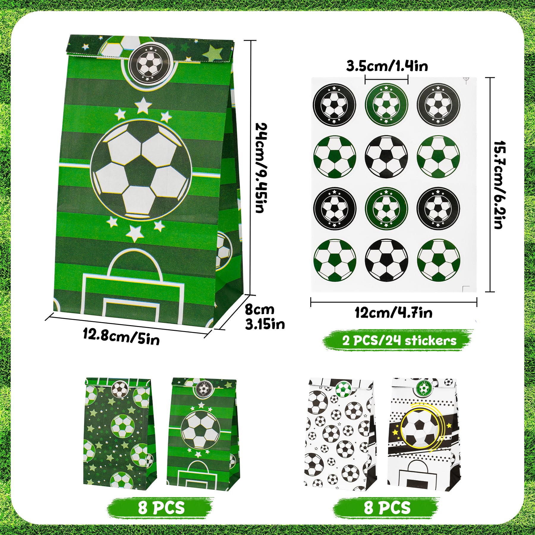 Fussball Party Taschen, 16 Stück Fussball Geschenktüten Papier mit 24 Aufkleber, Football Party Bags Tüten zum Mitgebseltüten Gastgeschenke, Kindergeburtstagen Geburtstagstüten für Süssigkeiten