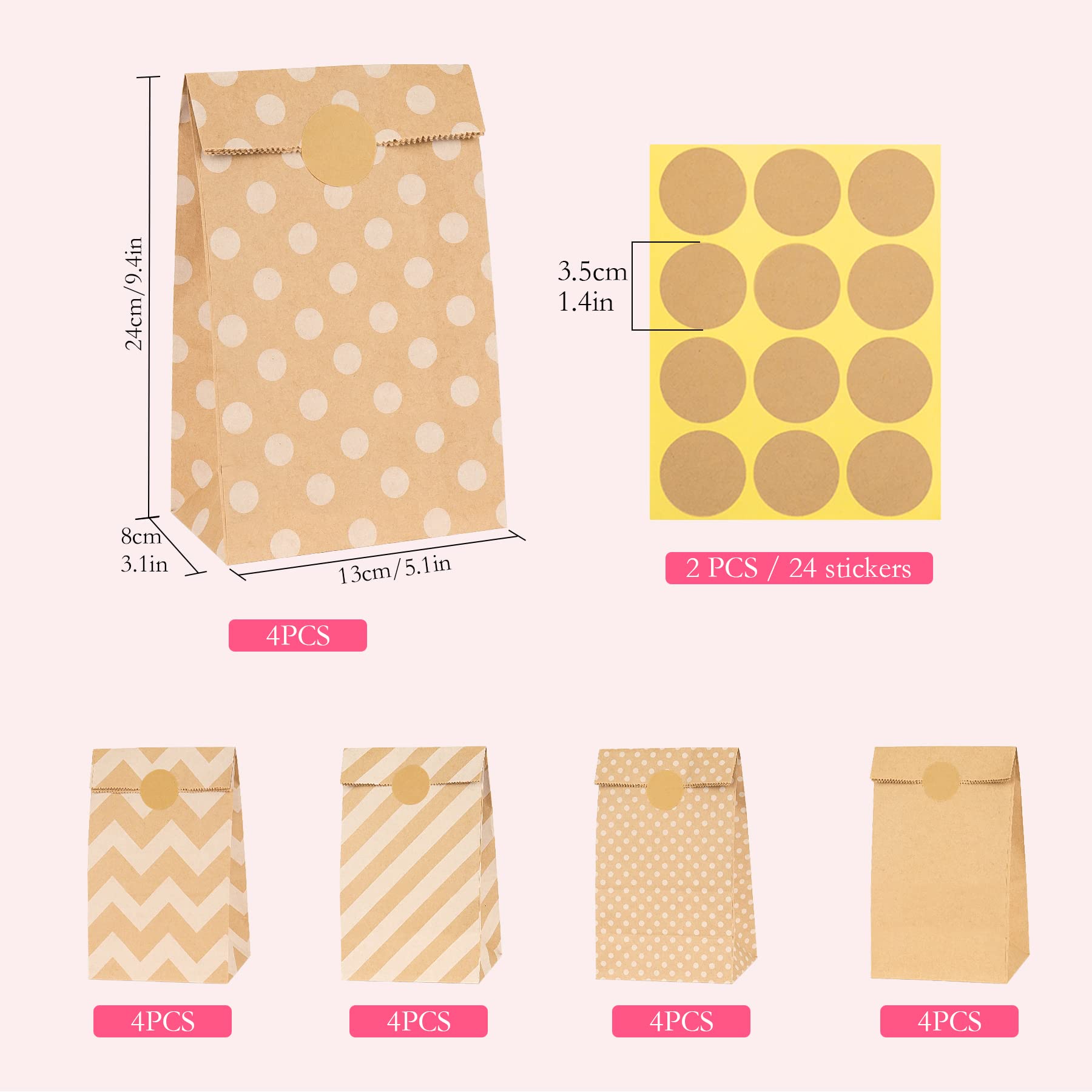 Papiertüten Braun, 20 Stück Geschenktüten Braun Tüten Papier mit 24 Aufkleber, Papiertüten zum Verpacken von Weihnachtsgeschenken, Giveaways, Kindergeburtstagen