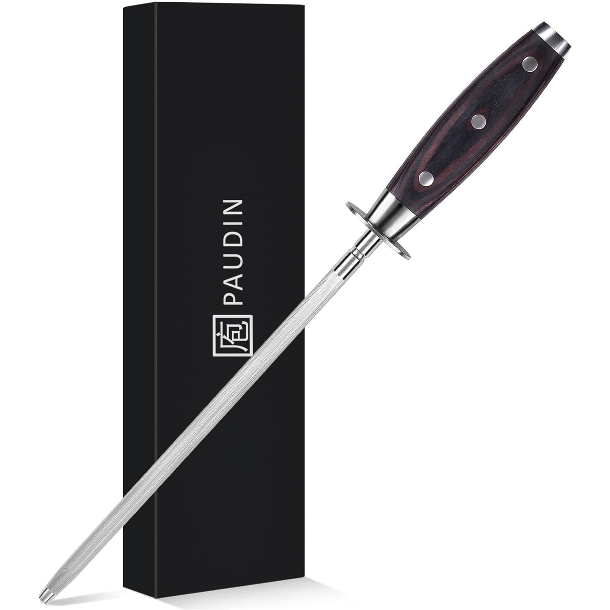 PAUDIN Wetzstahl 25 cm, Profi Messerschärfer Wetzstahl für Messer – aus gehärtetem Spezialstahl mit Holzgriff, Premium Messer Schleifen für Langanhaltende Schärfe
