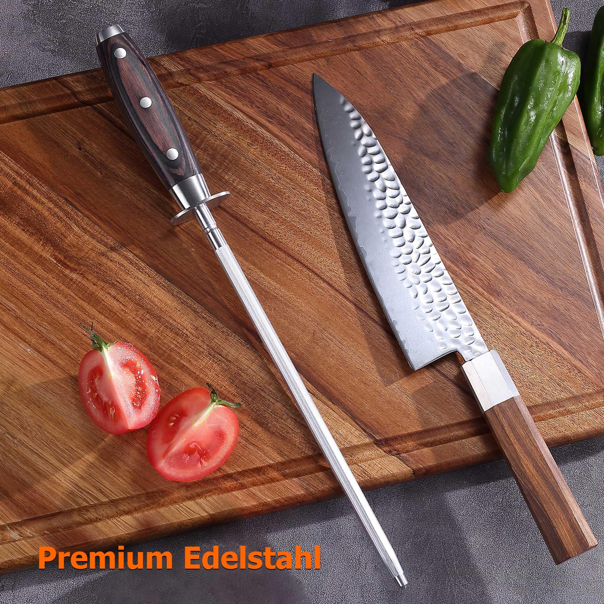 - QUALITÄTSSERVICE: Wir bieten Ihnen eine 100% Zufriedenheitsgarantie. Wenn Sie Fragen zum Wetzstahl haben, können Sie sich gerne an uns wenden, und wir werden Ihre Fragen innerhalb von 24 Stunden beantworten.